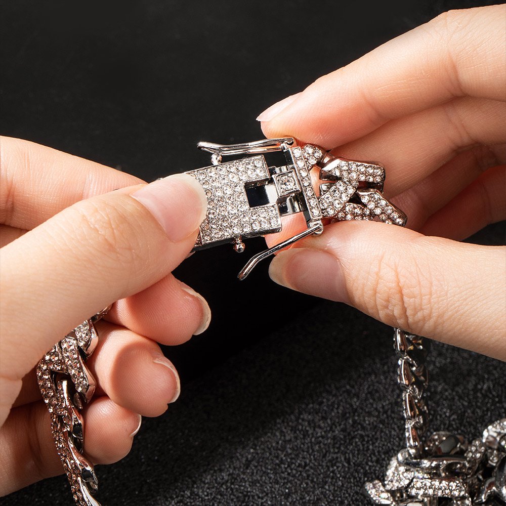 Unsere Halskette bietet ein trendiges Design, das mühelos Luxus mit Hip-Hop verbindet. Die klobige Kette ist sorgfältig aus hochwertigem Material gefertigt und garantiert Langlebigkeit und langanhaltenden Glanz, der dem Test der Zeit standhält. Der Anhänger fängt das Licht aus allen Blickwinkeln ein und verleiht ihm eine unbestreitbare Aura von Raffinesse und Stil. Der sichere Verschluss sorgt dafür, dass die Halskette sicher um Ihren Hals liegt und Sie Ihr neues Lieblingsschmuckstück beruhigt tragen können.