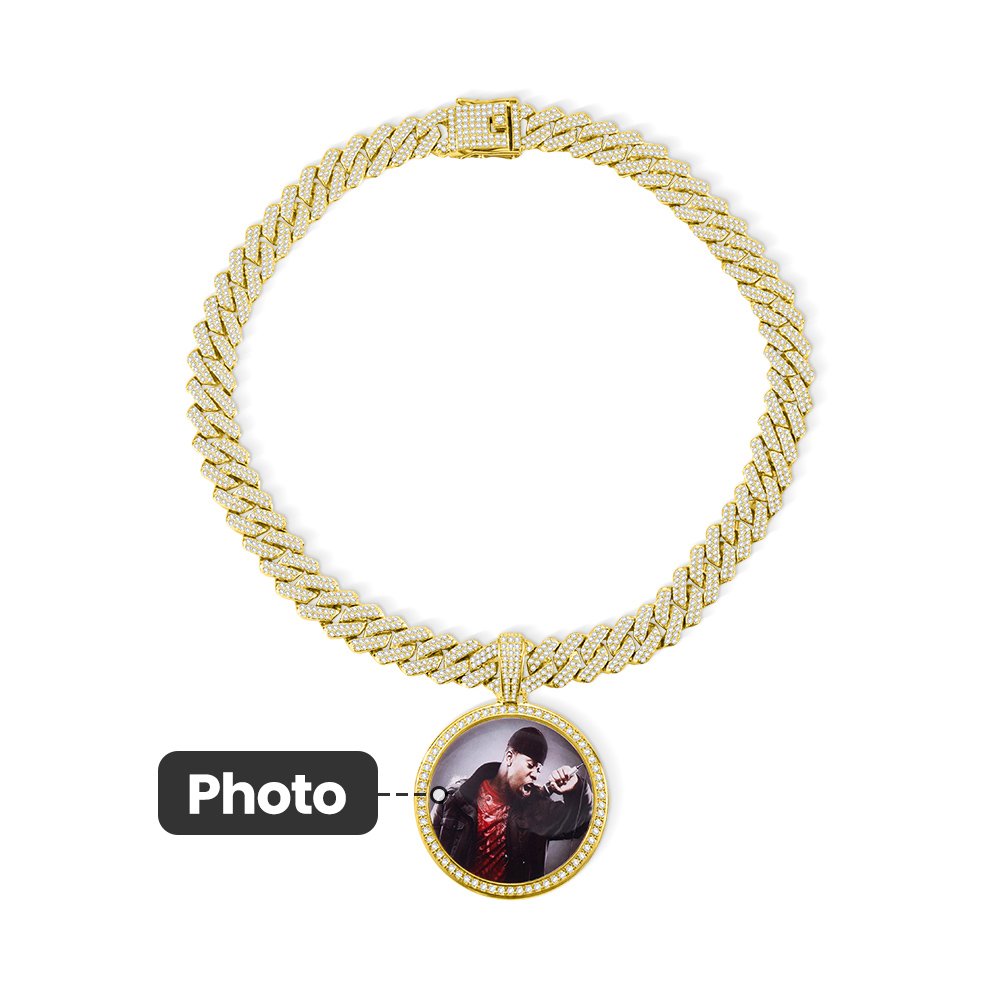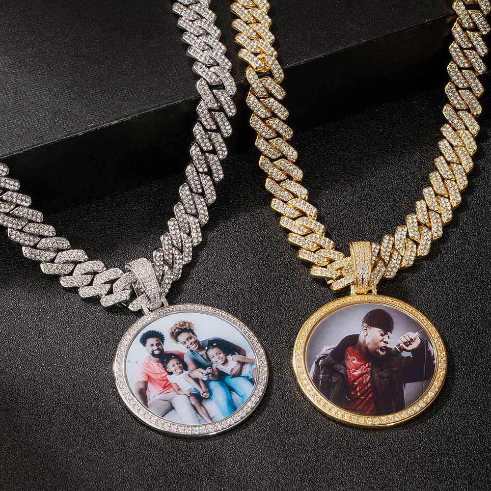 Dieses einzigartige Accessoire ist sorgfältig mit funkelnden Zirkonia-Steinen besetzt, die glitzern und glänzen wie keine anderen. Der aufwendig gearbeitete Anhänger zeigt ein exquisites Foto Ihrer Wahl und ist somit ein bemerkenswertes Andenken für die Familie oder ein Geburtstagsgeschenk für den besonderen Menschen in Ihrem Leben.