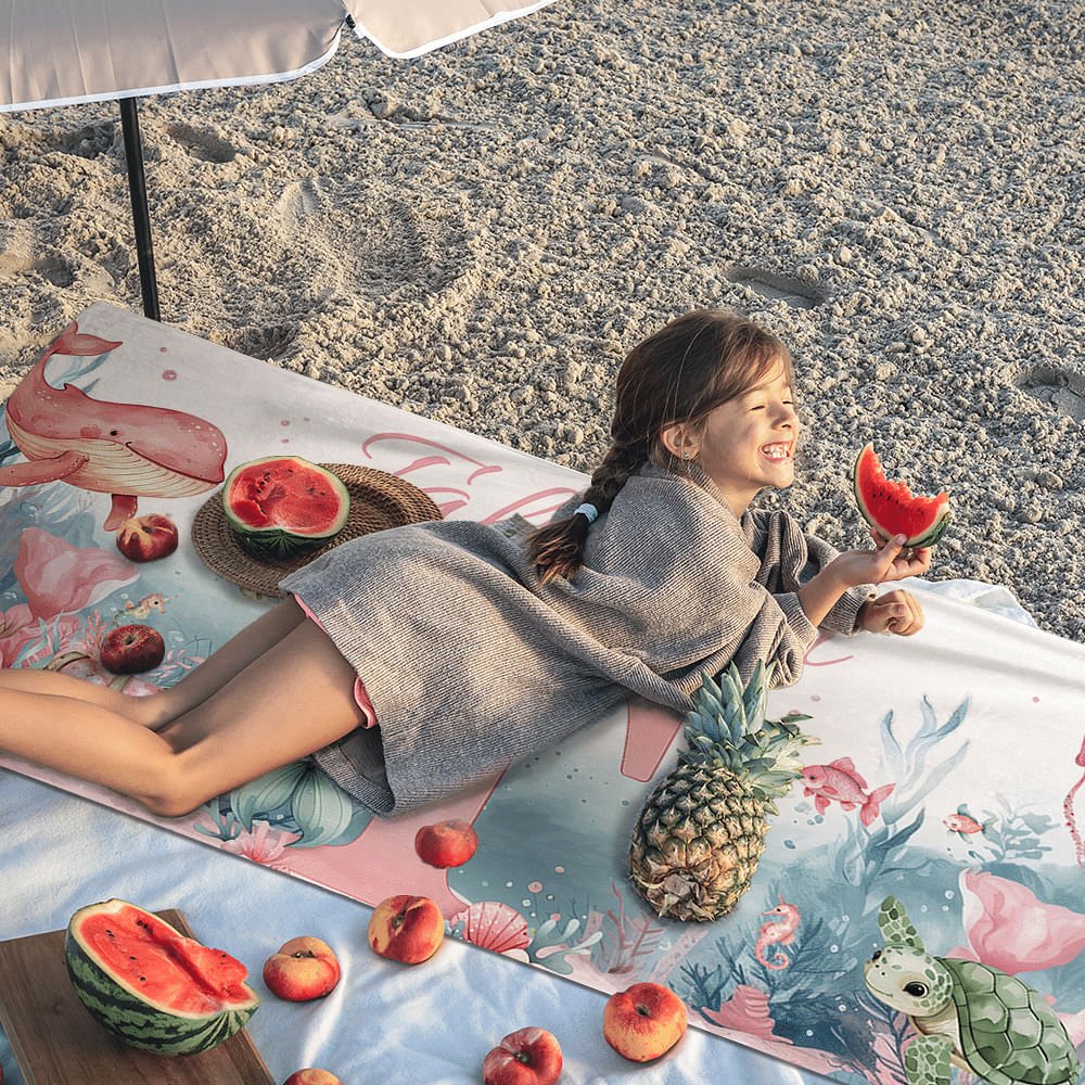 Dieses Strandtuch ist nicht nur für den Strand geeignet, sondern auch ein vielseitiger Begleiter für verschiedene Aktivitäten. Dieses Handtuch wird zu einem unverzichtbaren Teil der Sommerabenteuer Ihres Kindes, von Poolpartys und Strandurlauben bis hin zu Picknicks im Park und gemütlichen Filmabenden. Das aus hochwertigen Materialien gefertigte Handtuch ist so konzipiert, dass es den Strapazen des täglichen Gebrauchs standhält, ohne dabei seine außergewöhnliche Weichheit und sein lebendiges Design zu verlieren.