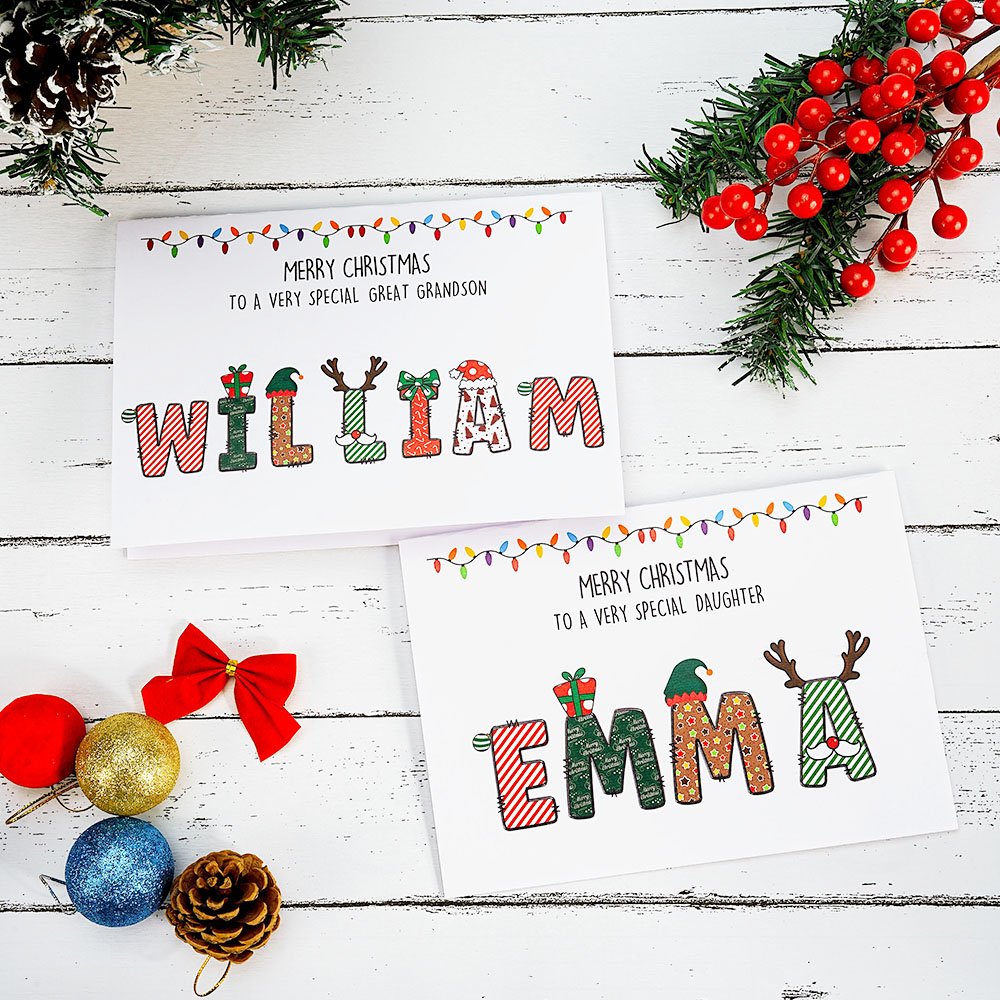 Das größte Highlight dieser personalisierten Grußkarte ist, dass sie mit weihnachtlichen Elementen gestaltet ist und die Namen der Enkelkinder oder anderer Verwandter und Freunde auf die Karte gedruckt werden können. So wird jede Karte zu einem einzigartigen und exklusiven Segen und verleiht ein Gefühl von persönlicher Exklusivität.