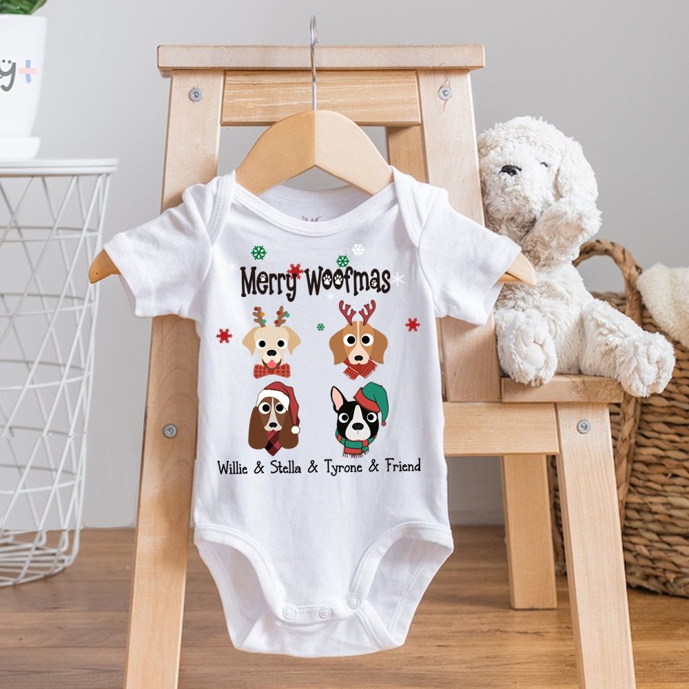 Das wunderschöne Design Merry Woofmas wird mit einem hochwertigen Tintentransferverfahren gedruckt, das sorgfältig auf den Strampler aufgetragen wird, um ein wirklich herausragendes Ergebnis zu erzielen. Alle unsere Strampler bestehen aus 100 % Baumwolle und sind daher sehr weich, langlebig und dehnbar für Ihre Kleinen. Ihr Kind wird sich den ganzen Tag über wohlfühlen, während es seinen Strampelanzug trägt. (EINZIGARTIGE GESCHENKIDEE): Dieser niedliche und bezaubernde Merry Woofmas Baby Onesie ist das perfekte Geschenk für eine Babyparty, Schwangerschaftsankündigung, Babygeburtstag, Geschlechtsenthüllung, zukünftiges Baby, Geburtstermin, Weihnachten, Neujahr, Geschenk für die werdende Mutter, Muttertag oder jeden anderen Geschenkanlass für ein Baby. Dieses Baby Krabbler macht ein großes Geschenk von einem Opa, Oma, Tante, Onkel, Nichte oder Neffe oder werdende Mutter.
