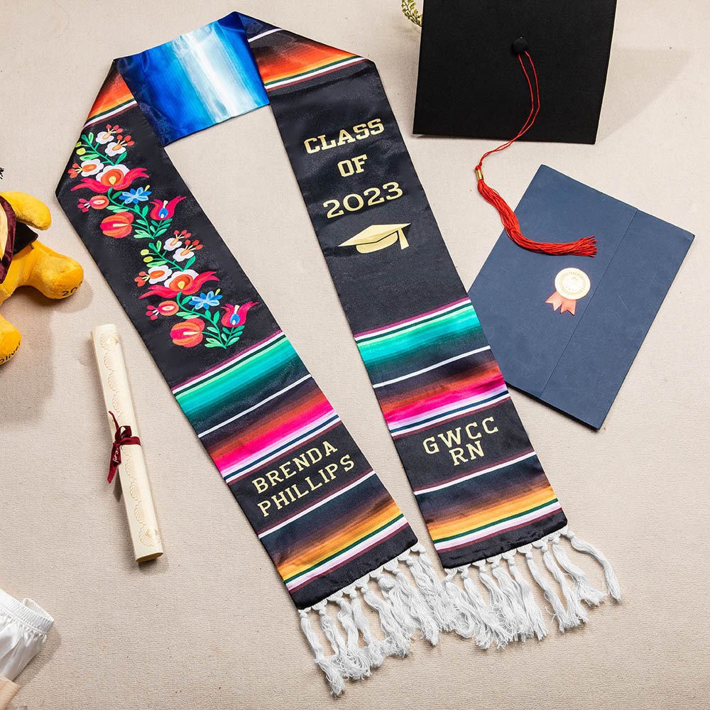 Was unsere Stola für die Abschlussfeier von anderen Accessoires unterscheidet, ist ihr individuelles Design. Sie können Ihren Namen, Ihre Schule oder eine andere persönliche Nachricht auf die Stola sticken oder drucken lassen, um sie zu einem einzigartigen Andenken zu machen, an das Sie sich noch viele Jahre lang erinnern können. Der Anpassungsprozess ist einfach und problemlos, und unser Team von qualifizierten Fachleuten wird bei jedem Schritt mit Ihnen zusammenarbeiten, um sicherzustellen, dass Ihre Vision zum Leben erweckt wird.