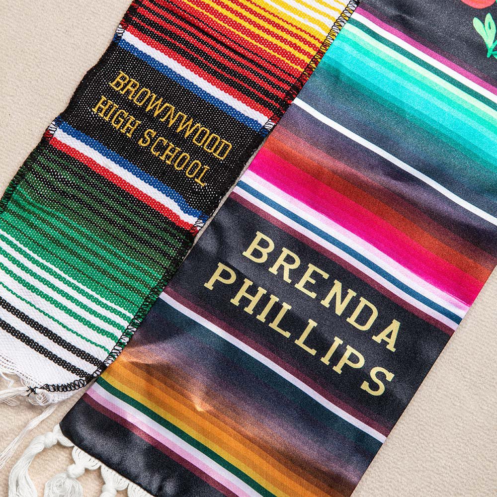Die Farbgebung und das Design unserer Stola für den Schulabschluss im mexikanischen Stil machen sie zu einem einzigartigen und kulturell bedeutsamen Accessoire. Die leuchtenden Farben und verschlungenen Muster sind von traditionellen mexikanischen Textilien inspiriert und stehen symbolisch für das reiche kulturelle Erbe Mexikos. Mit dem Tragen dieser Stola feiern Sie nicht nur Ihre akademischen Leistungen, sondern erweisen auch der lebendigen und farbenfrohen Kultur Mexikos die Ehre.