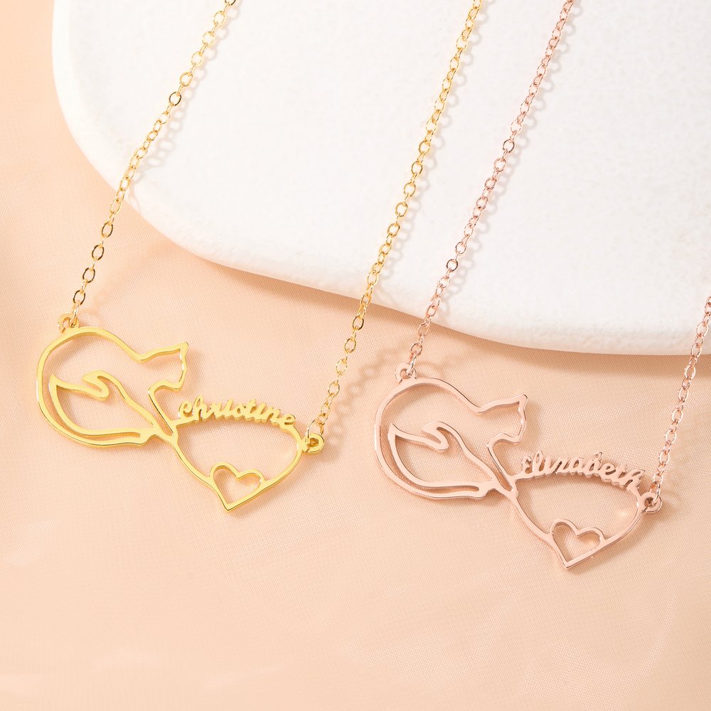 Personalisierte Mobius Katze Name Liebe Herz Halskette Minimalistische Schmuck Geburtstag Jahrestag Geschenk für Katzenliebhaber Besitzer