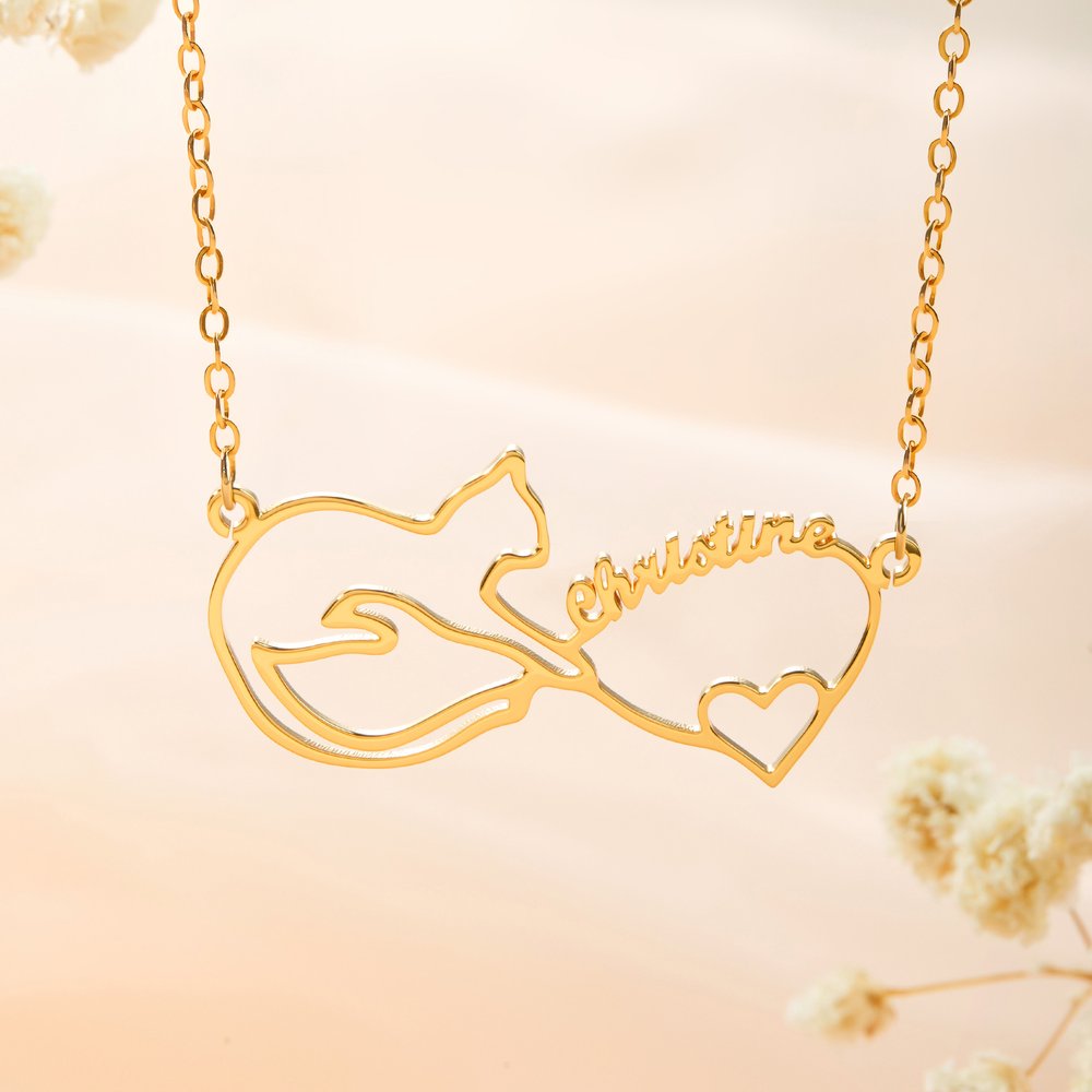 Unsere Halskette ist ein ideales Geschenk für Katzenliebhaber und Haustierbesitzer gleichermassen. Der Mobius-Streifen steht für ewige Verbundenheit, während die Katzensilhouette und das Herz die Essenz Ihrer Verbindung einfangen. Der personalisierte Name macht das Geschenk noch schöner. Ob zum Geburtstag, zum Jahrestag, zum Gedenken an ein Haustier oder als einfache Überraschungsgeste, es ist eine einzigartige und herzliche Art zu zeigen, dass man sich um sie kümmert - ein wunderschönes Andenken, das die besondere Verbindung zwischen einem Haustier und seinem Menschen ehrt.