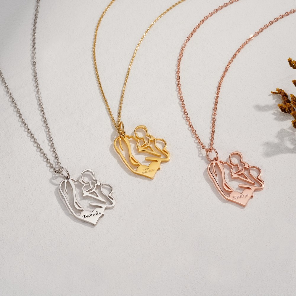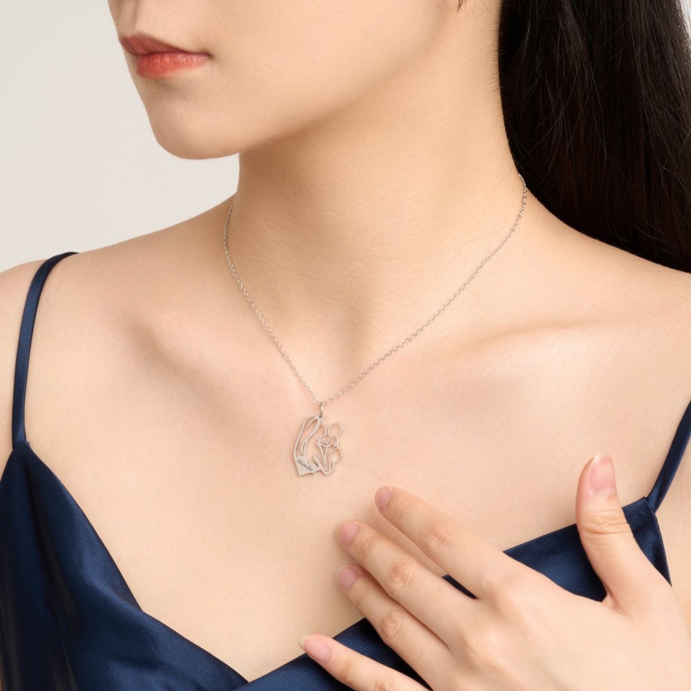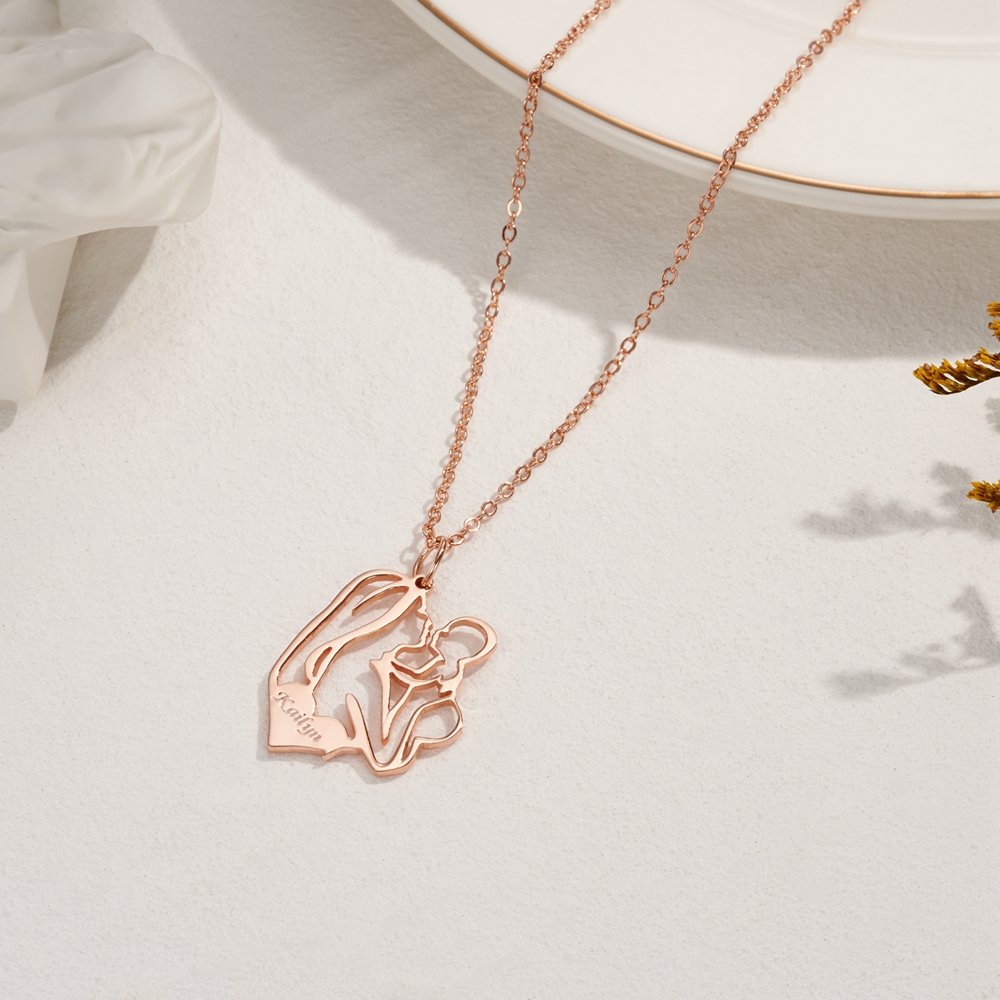 Unsere Halskette ist eine herzerwärmende Darstellung der warmen Umarmung einer Mutter. Der aufwendig gestaltete Anhänger fängt den zärtlichen Moment ein, in dem eine Mutter ihr Baby festhält und es in eine Welt der Liebe und Geborgenheit einhüllt. Es ist nicht nur eine Halskette, sondern eine tragbare Umarmung, die die kostbare Verbindung in Ihrem Herzen festhält.