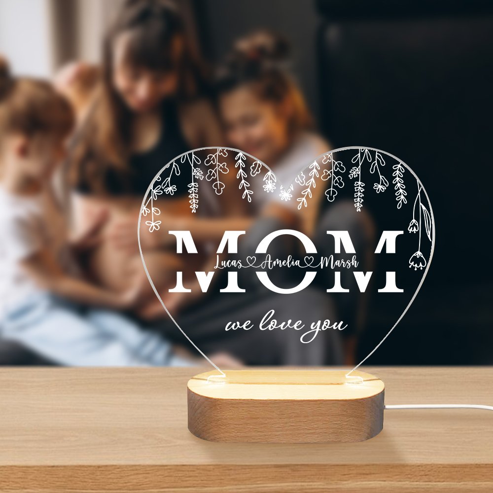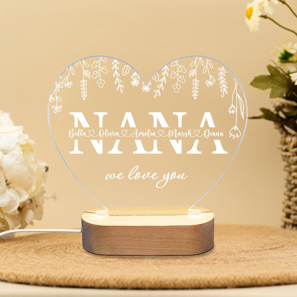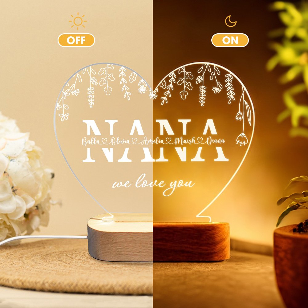 Dieses personalisierte Nachtlicht ist ein außergewöhnliches Geschenk zum Muttertag, zum Geburtstag, zu Weihnachten oder zu jedem anderen besonderen Anlass. Es ist perfekt für Mütter, Großmütter oder jede Frau, die es verdient, sich geschätzt und geliebt zu fühlen, und schafft ein bleibendes Andenken, das sie in Ehren halten werden.