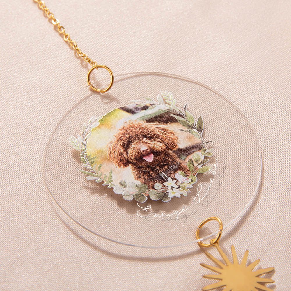 Dieser Kristall-Sonnenfänger kann mit dem Foto und dem Text eines geliebten Menschen personalisiert werden. So wird er zu einem einzigartigen und bedeutungsvollen Stück, das wertvolle Erinnerungen verewigt und jeder Einrichtung eine ganz persönliche Note verleiht. (STRAHLENDES KRISTALL DESIGN): Mit seinen wunderschönen Kristallen und baumelnden Kristallanhängern bricht dieser Sonnenfänger das Sonnenlicht und andere Lichtquellen in eine atemberaubende Farbenpracht. Er bringt Leben und Glanz in jeden Raum und ist die perfekte Ergänzung für Fenster, Türöffnungen, Gärten und Balkone. (DURCHDACHTES GESCHENK): Dieser Sonnenfänger ist ein aufrichtiges Geschenk für Familienmitglieder, Freunde oder jeden, der einen Verlust erlitten hat. Er bietet eine tröstliche Möglichkeit, sich an geliebte Menschen oder Haustiere zu erinnern und sie zu ehren, und spendet Trost und Unterstützung in schwierigen Zeiten.