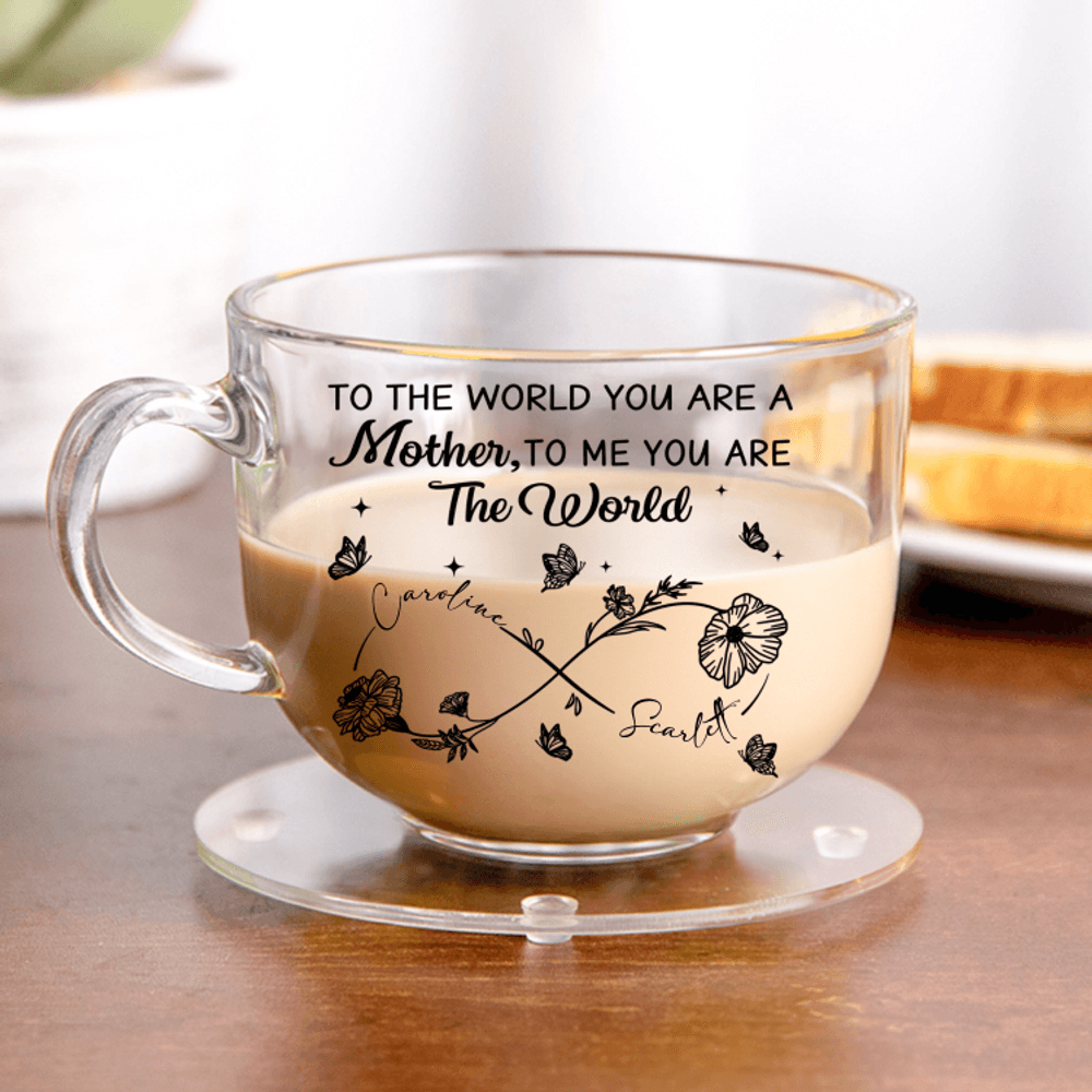 Mit einem atemberaubenden Unendlichkeitssymbol, das die ewige Verbindung zwischen Mutter und Kind darstellt. In das Design sind nahtlos zwei Blumen und Namen des Geburtsmonats integriert, so dass Sie jede Blume und jeden Namen individuell gestalten können, um die einzigartigen Geburtsmonate von Mutter und Kind widerzuspiegeln. Dieses durchdachte und aufwändige Design macht die Tasse nicht nur zu einem funktionalen Stück.