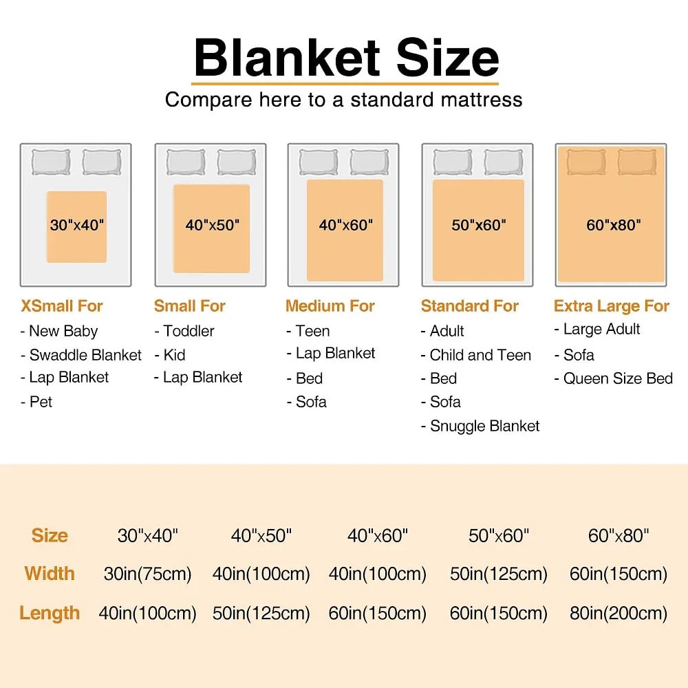 Whether you are watching a movie on the sofa, enjoying a quiet reading time in the bedroom, or providing extra warmth when traveling outdoors, this blanket will bring you comfort and warmth. Its portability also makes it a perfect companion for travel or picnics, allowing you to enjoy the warmth of home wherever you are. There are a variety of sizes to choose from, no matter what your needs are, there is always a size to meet them.