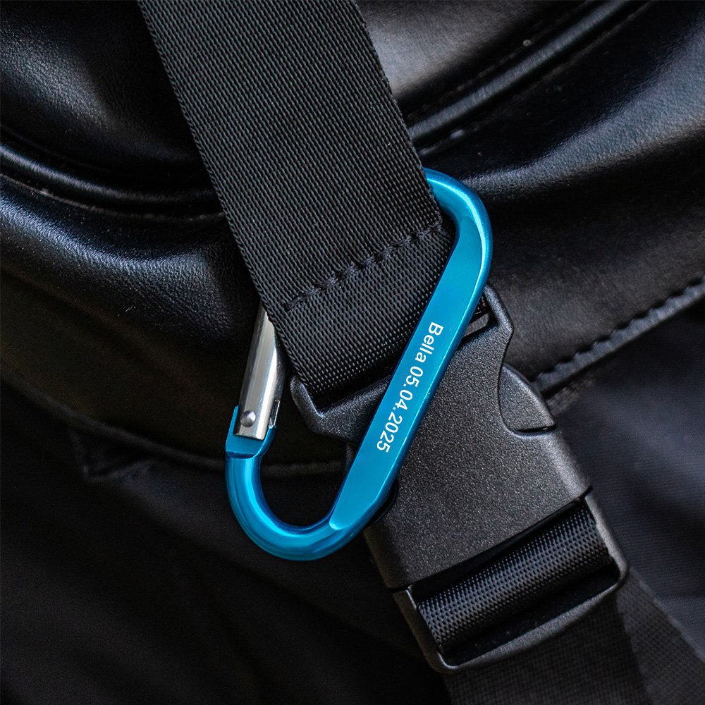 Dieser maßgeschneiderte einzigartige Karabiner oder Rucksack-Anhänger ist sehr geeignet für Freunde, die gerne Camping und Outdoor-Sportarten reisen, insgesamt sechs verschiedene Farben können ausgewählt werden.