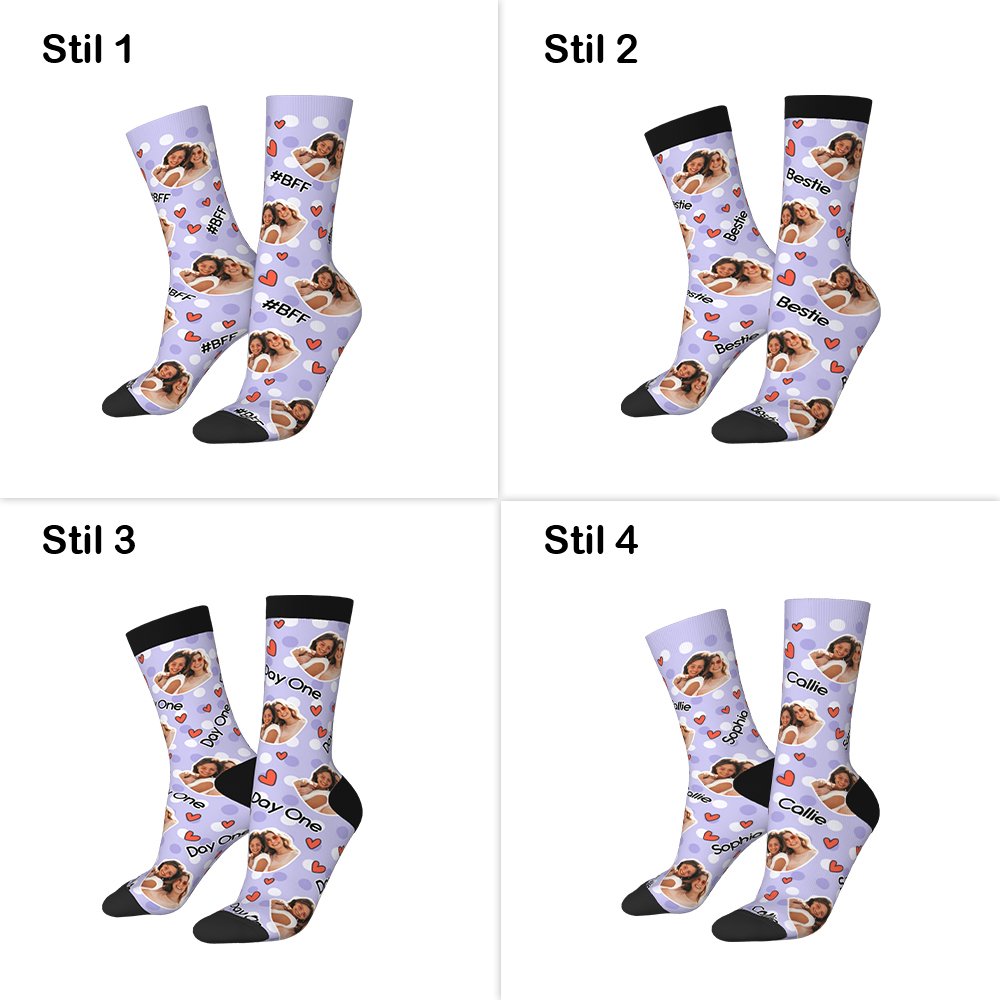 Diese personalisierbaren Wadensocken kombinieren einzigartige Personalisierung und Funktionalität. Von den Nutzern hochgeladene Fotos können auf die Vorderseite und die Seiten der Socken gedruckt werden, mit lebendigen Hintergrund-Mustern und einer Vielzahl von optionalen Titel-Wörtern, die den Socken reichhaltige kreative Elemente verleihen. Es stehen vier Stile zur Auswahl, die sich an unterschiedliche Bedürfnisse anpassen, und bis zu acht Farben, die eine größere Vielfalt an persönlichem Ausdruck ermöglichen.