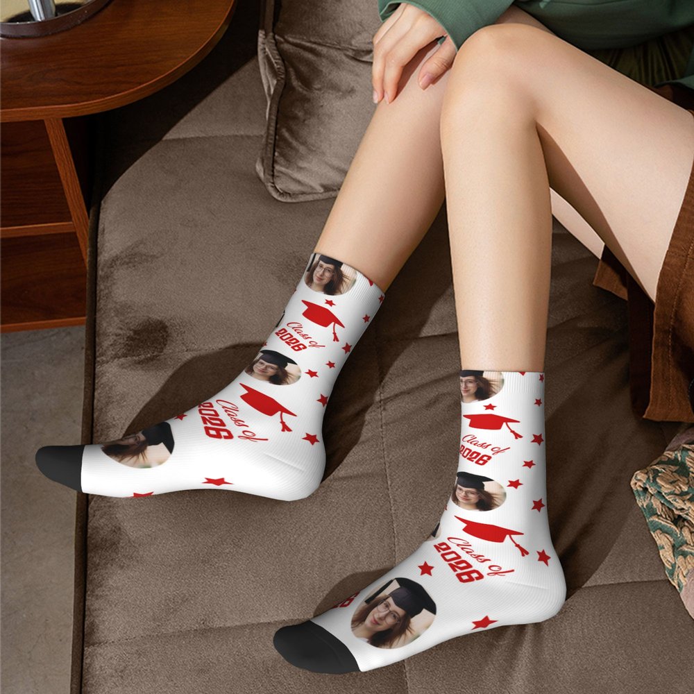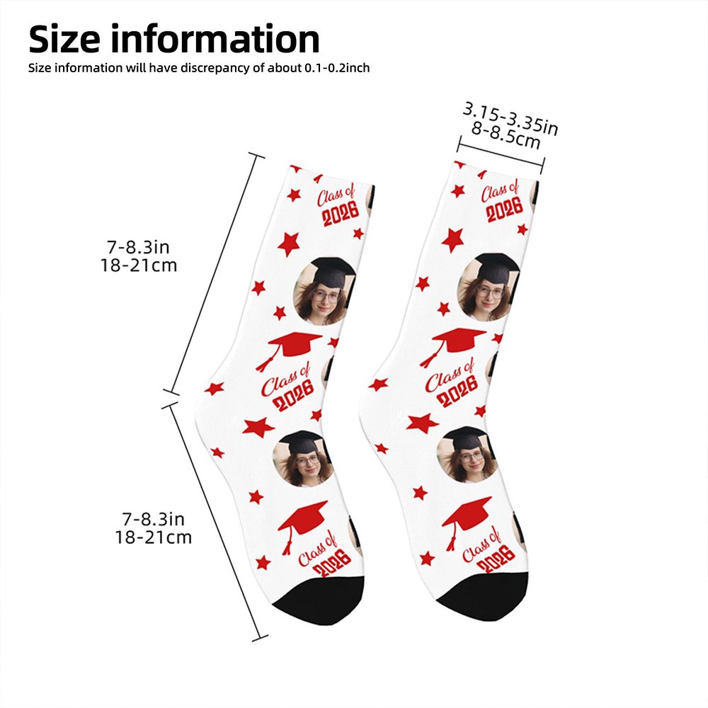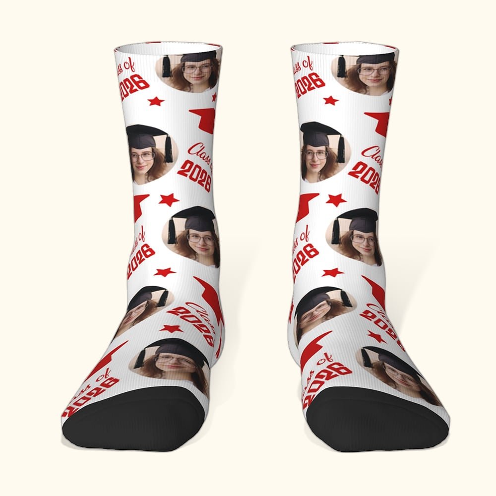 Sie suchen nach dem perfekten Geschenk für einen Freund oder Klassenkameraden, der seinen Abschluss macht? Diese personalisierten Socken sind eine aufmerksame und sentimentale Art und Weise, die Leistung des Absolventen zu würdigen. Mit einem Foto des Empfängers, dem Jahr des Abschlusses und anderen Mustern sind diese Socken ein wirklich herzliches und unvergessliches Geschenk.