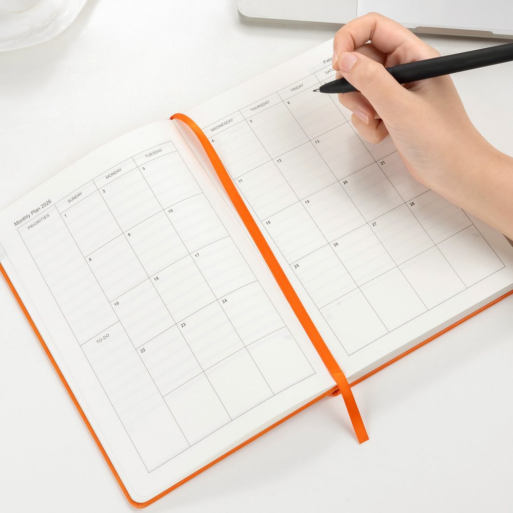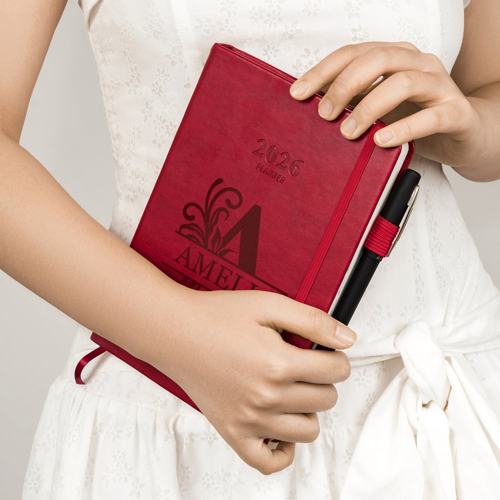 Dieser Planer hat ein minimalistisches Design und ist in sieben Farben erhältlich, darunter Rot, Pink und Schwarz, und kann auch mit Ihrem Namen versehen werden. Das "2026 PLANNER"-Logo weist eindeutig auf seinen Zweck hin und macht ihn zu einem einzigartigen und personalisierten Organisationsmittel, das Ihren individuellen Stil widerspiegelt.