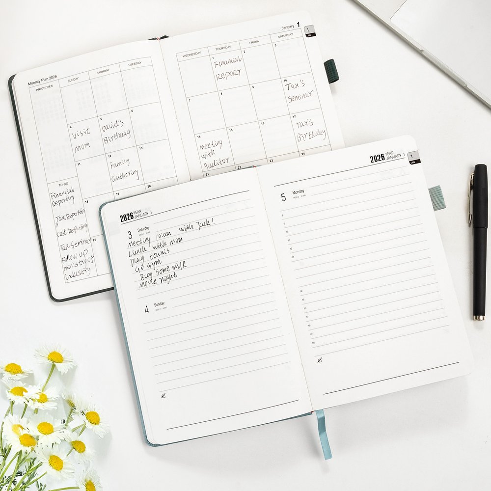 Er eignet sich für Geschäftsleute, die ihre Arbeit planen, für Studenten, die ihren Unterricht organisieren, und für alle, die ihren Alltag bewältigen müssen. Das Layout umfasst 2026 Monats- und Tagespläne, Aufgabenlisten, Ziele und Zeitpläne - ein vielseitiges Werkzeug für jede Umgebung.