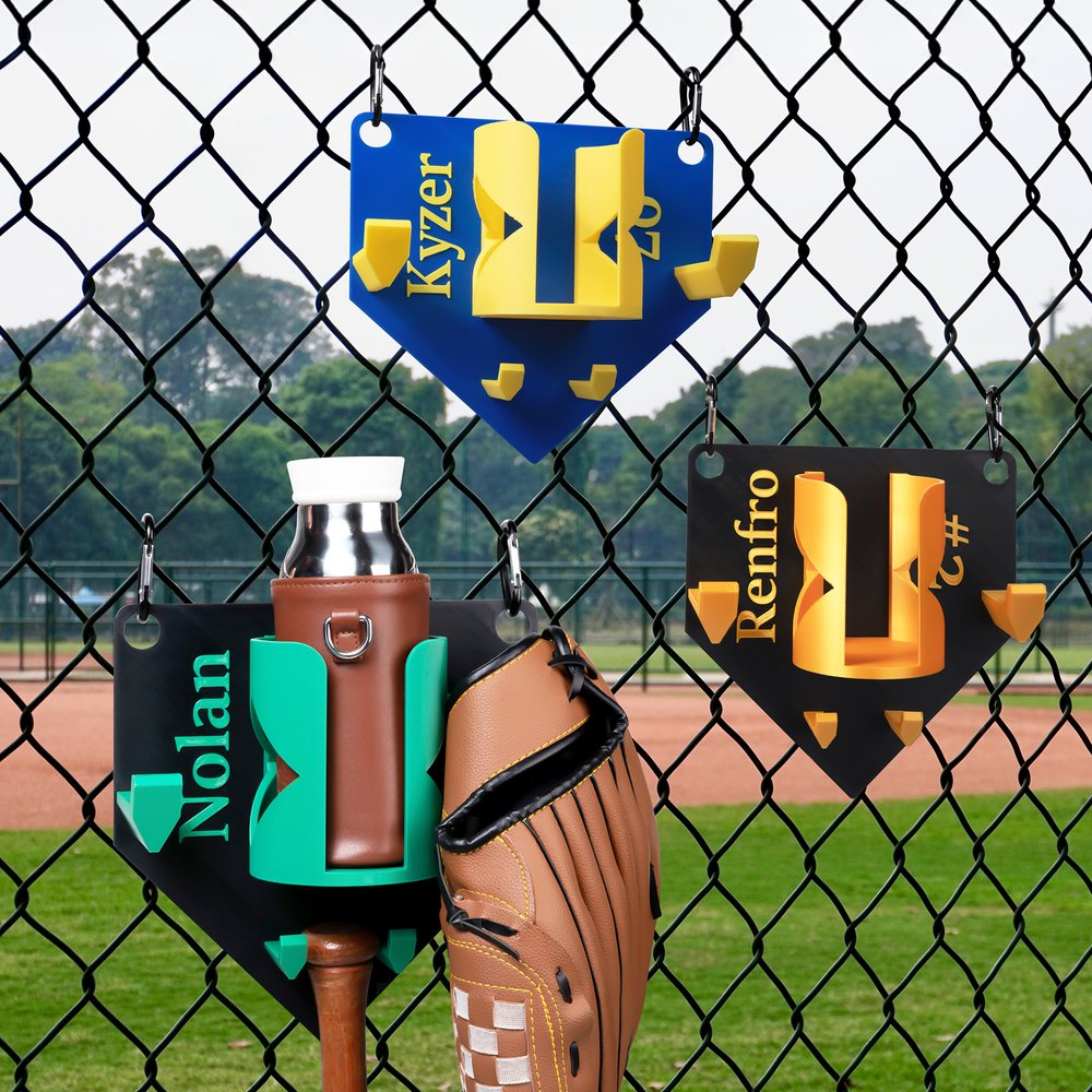 Dieser Dugout-Organizer hat die klassische Form der Home Plate, die die Essenz des Baseballs einfängt und Ihre Leidenschaft unterstreicht. Er kann mit Text versehen werden und ist in mehreren trendigen Farben erhältlich. Am Zaun des Unterstandes aufgehängt, dient er sowohl als praktische Aufbewahrungslösung als auch als Ihr persönliches Banner, mit dem Sie Ihre Ausrüstung schnell identifizieren können. Es ist ein auffälliges Stück, das deine Liebe zum Spiel stolz zur Schau stellt.