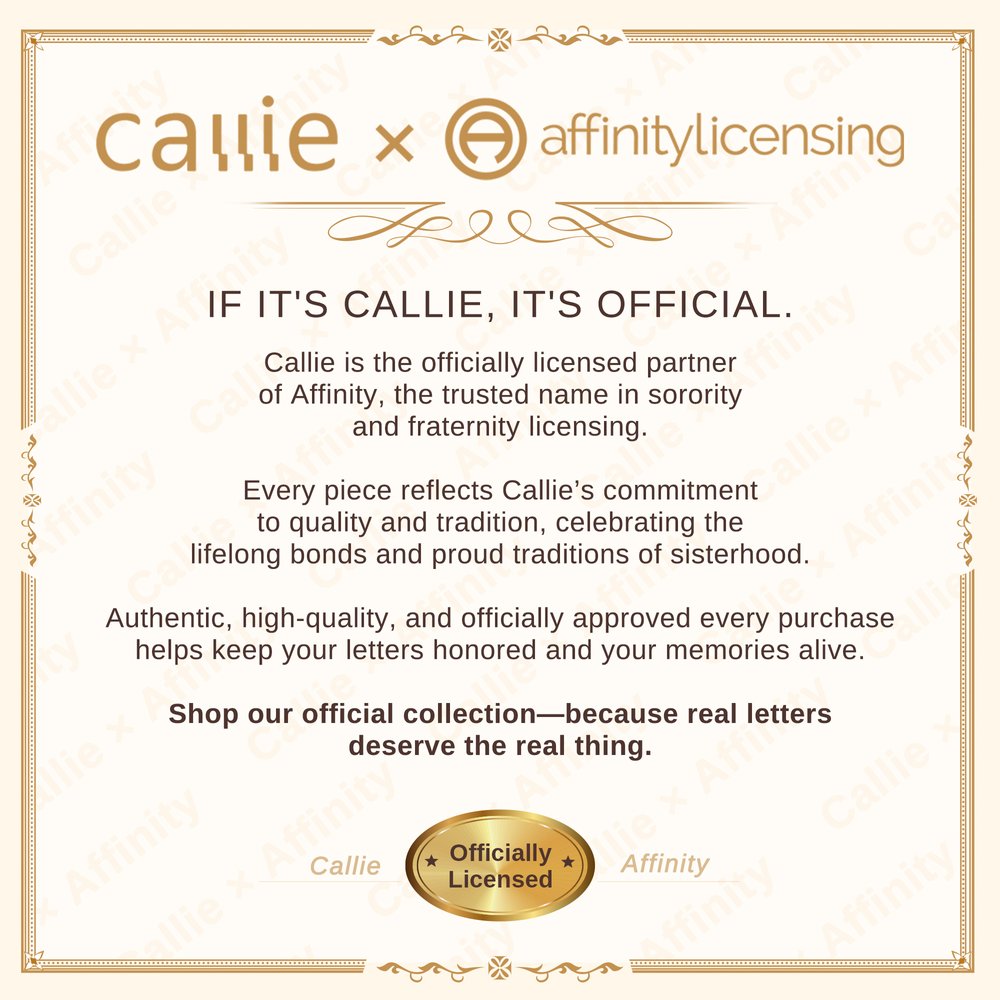 Callie fühlt sich geehrt, durch unsere Partnerschaft mit Affinity offiziell lizenzierte Schwesternschaftsprodukte anbieten zu können. Diese Zusammenarbeit ermöglicht es uns, qualitativ hochwertige Artikel zu kreieren, die das Erbe und die Werte der einzelnen Schwesternschaften feiern. Mit dem Vertrauen von Affinity können wir Ihnen mit Stolz Produkte anbieten, die wahre Schwesternschaft verkörpern und mit Respekt und Liebe zum Detail hergestellt werden.