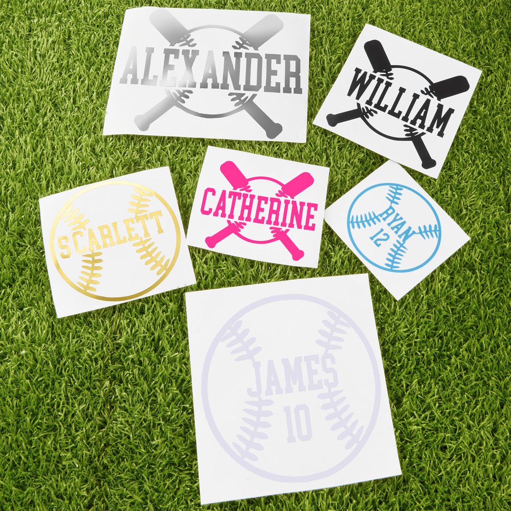 Inspiriert von Amerikas beliebtestem Zeitvertreib, zeigt dieser Aufkleber zwei klassische Motive - einen Baseball und einen Schläger - die beide mit einem Namen und einer Nummer versehen werden können. Erhältlich in einer Vielzahl von Farben, können Sie damit Ihren sportlichen Stil mit einer persönlichen Note zeigen.