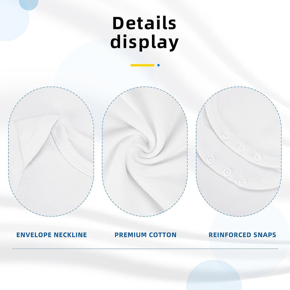 It is made of soft and breathable fabric that will not irritate your baby's delicate skin. Make sure your child is comfortable and happy throughout the day. It comes with 3 buttons to facilitate daily care operations such as diaper changes. The print on the bodysuits is clear and delicate and not easy to fade, which is the best choice to keep as a souvenir!