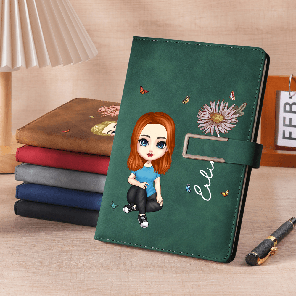 Das schlichte, aber raffinierte Design mit einem Charakter-Clipart in der Mitte, gepaart mit einer personalisierten Geburtsblume und einem anpassbaren Namen, verbindet künstlerisches Flair mit einem Gefühl von Exklusivität. Der PU-Ledereinband hat eine zarte Textur und ist sowohl praktisch als auch dekorativ und erinnerungswürdig.
