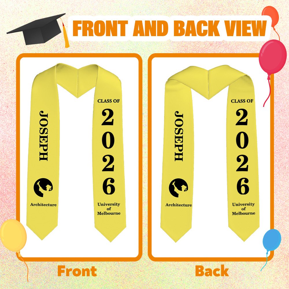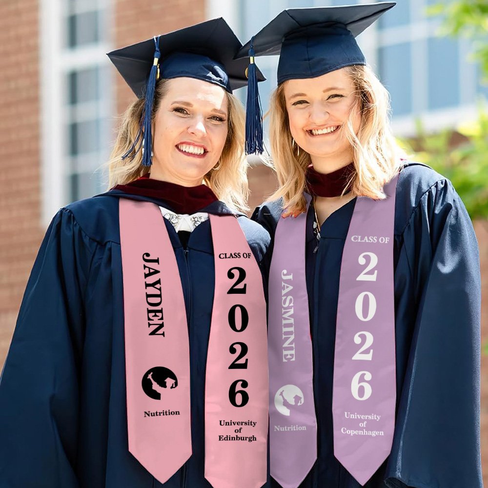 Unsere Schärpen sind farbenfroh, mit dreißig Farboptionen, die dem Farbsystem des Colleges entsprechen, und es gibt zwei verschiedene Farbvarianten: einfarbig und mit Pailletten. Sie können Ihren Namen, den Namen der Schule, das Hauptfach und das Abschlussjahr auf der Schärpe individuell gestalten, um sie noch exklusiver zu machen. Das flache oder spitz zulaufende Design der Schärpe ist einfach und elegant, modisch und erinnerungswürdig zugleich und bringt die Persönlichkeit und die Leistungen der Absolventen perfekt zum Ausdruck.