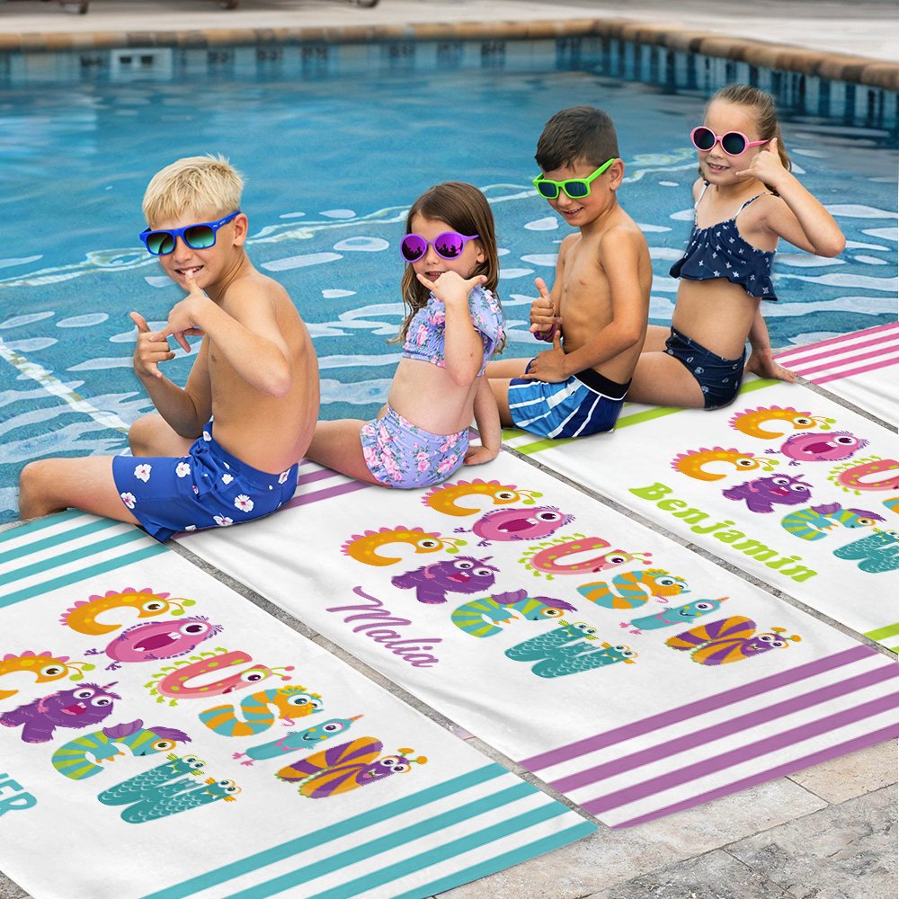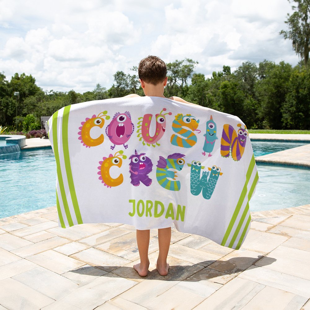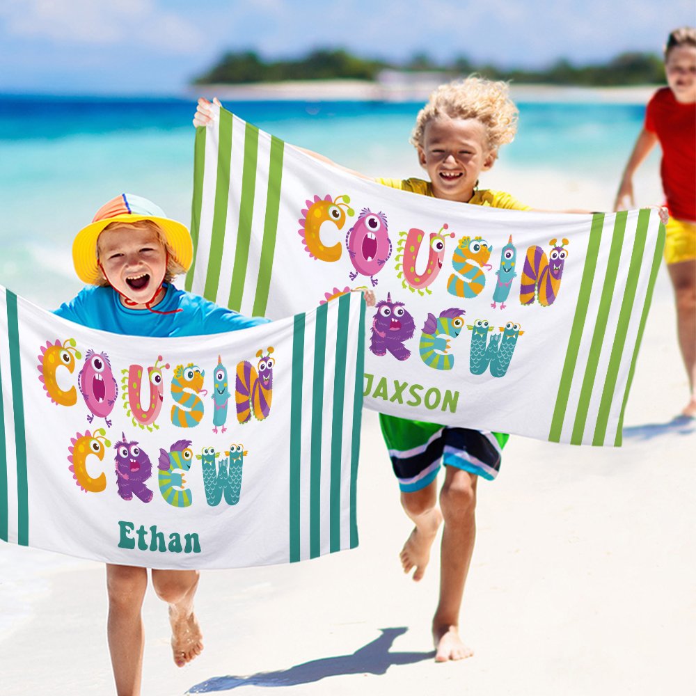 Dieses Strandtuch zeichnet sich durch eine lebhafte Farbabstimmung und einen auffälligen Namensaufdruck als Design-Highlights aus, und jedes Detail ist voller kindlicher Kreativität. Das Strandtuch kombiniert Cartoon-Stil Monster-Muster mit dem Text "Cousin Crew", die nicht nur extrem kindlich ist, sondern betont auch die enge Beziehung und Teamgeist zwischen Familien, so dass dieses Strandtuch mehr unvergesslich. 16 verschiedene Farben machen Ihre Auswahl reichhaltiger.