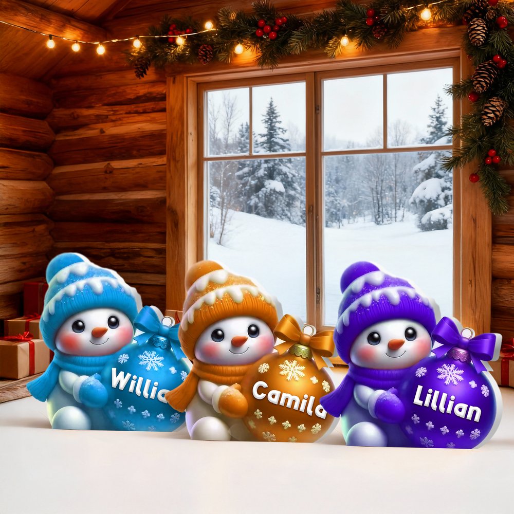 Wählen Sie aus neun leuchtenden Schneemann-Farben – rot, gelb, grün, orange, blau, lila, dunkelblau, blaugrün und grau –, die Sie jeweils mit einem Namen versehen können. Diese bezaubernde Dekoration verleiht Ihrer Festtagseinrichtung eine persönliche Note, macht sie einzigartig und verbreitet festliche Stimmung.
