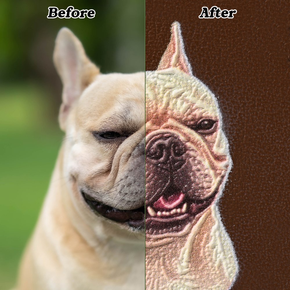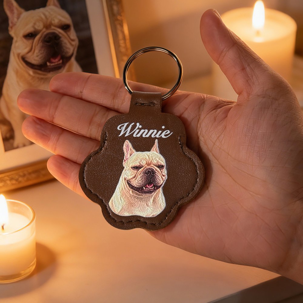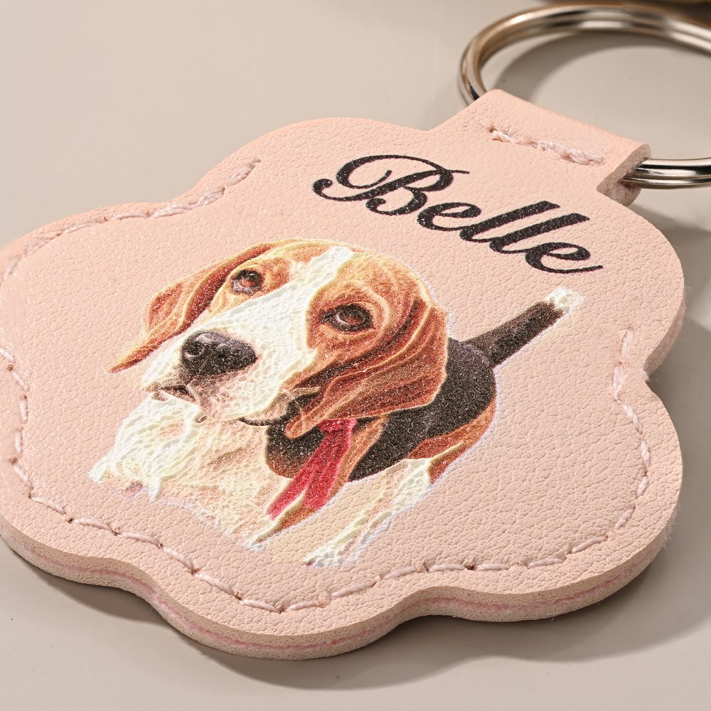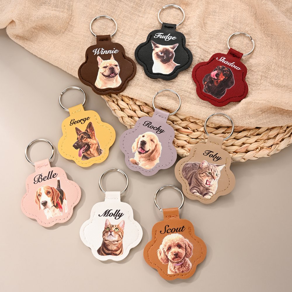 Dieser mit fortschrittlicher Prägetechnik auf hochwertigem Kunstleder gefertigte Schlüsselanhänger erzielt einen klaren, strukturierten und erhabenen Effekt, der das Foto Ihres Haustiers zum Leben erweckt. Sie können die erhabenen Details des Gesichts Ihres Haustieres sanft ertasten und so Ihre wertvollen Erinnerungen mit einem warmen und greifbaren Gefühl versehen.