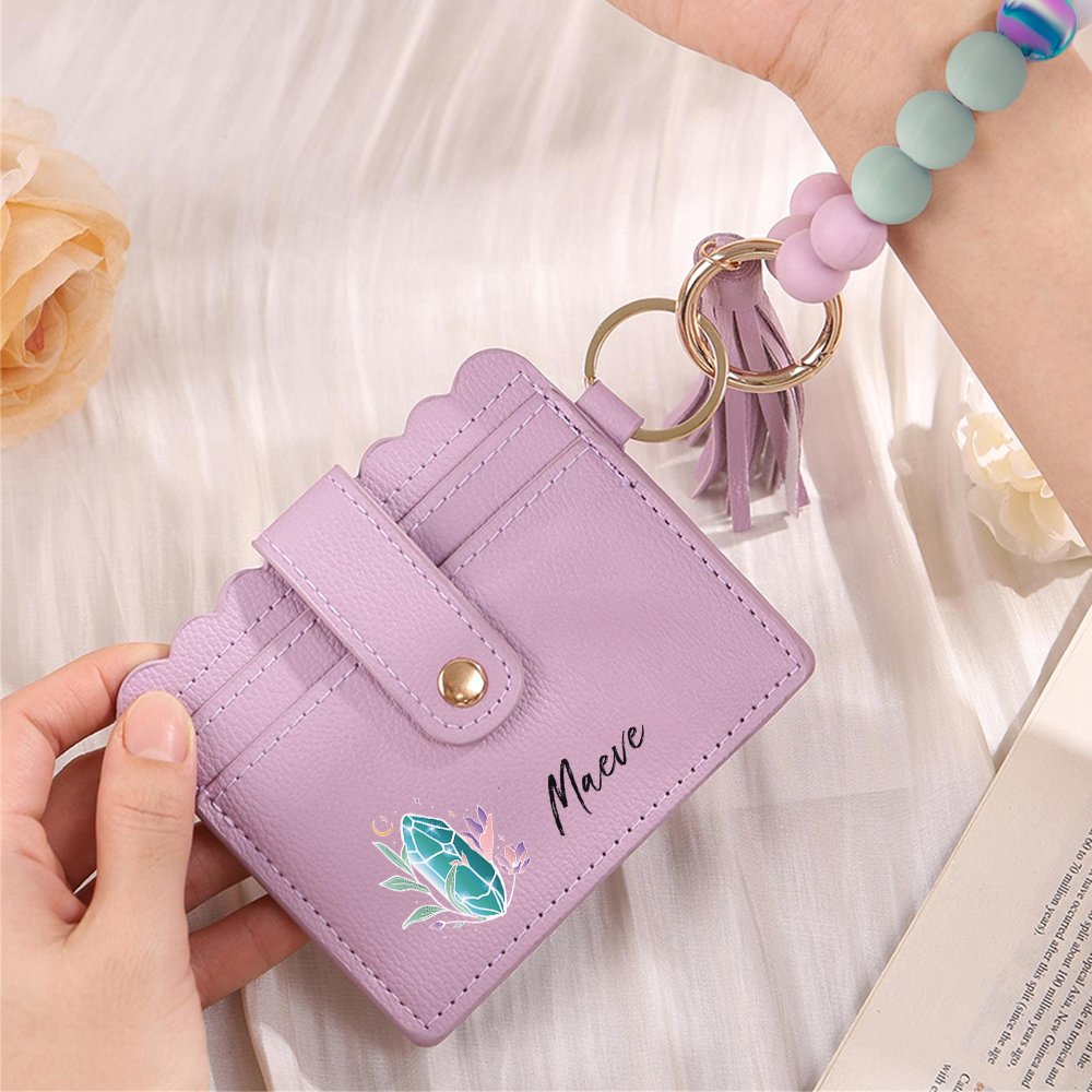 Dieses Schlüsselanhänger-Armband enthält nicht nur den geheimnisvollen Charme von Geburtssteinen, sondern auch raffinierte Elemente wie Blätter, kleine Blumen, Monde und Sterne, die eine künstlerische Atmosphäre schaffen, die sowohl verträumt als auch exquisit ist. Der anpassbare Name macht diese Schönheit einzigartig und exklusiv für Sie. Dieses Portemonnaie wird außerdem mit einem Perlenarmband geliefert, das seinen modischen Sinn und seinen visuellen Reiz noch verstärkt.