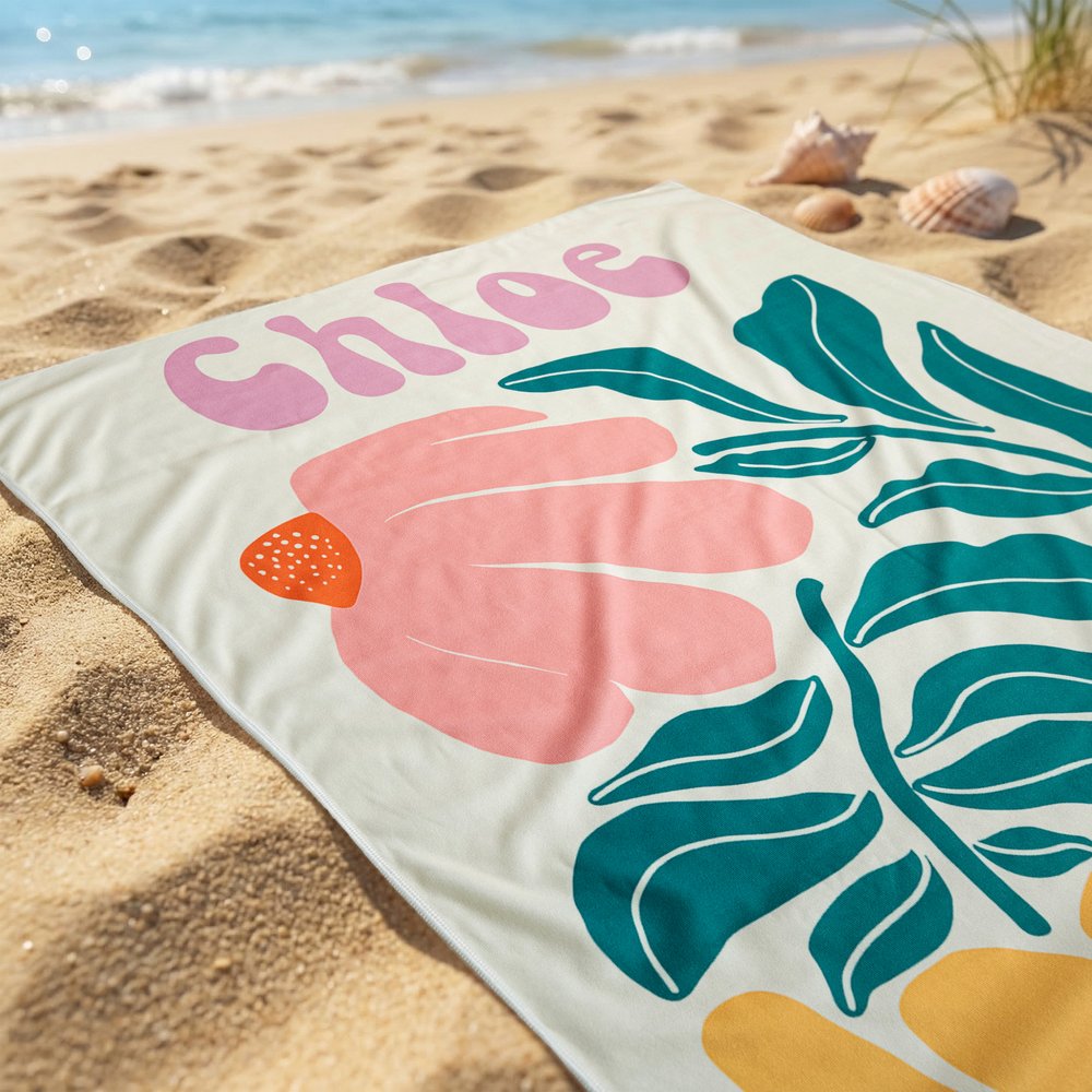 Dieses Strandtuch besticht durch ein charmantes Blumenmuster mit 20 lebendigen Designs zur Auswahl – voller Farbe und Lebensfreude. Zudem können Sie einen Namen in einer von 10 Farben hinzufügen lassen, um Ihren persönlichen Stil zu unterstreichen.