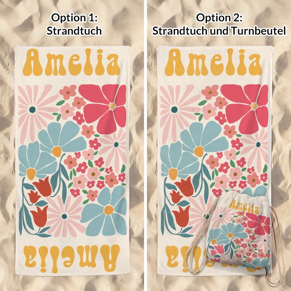 Personalisiertes Bunte-Blumen Schnelltrocknendes Übergroßes Strandtuch mit Namen Sommer Urlaub Pool Party Geschenk für Damen Schwimmer
