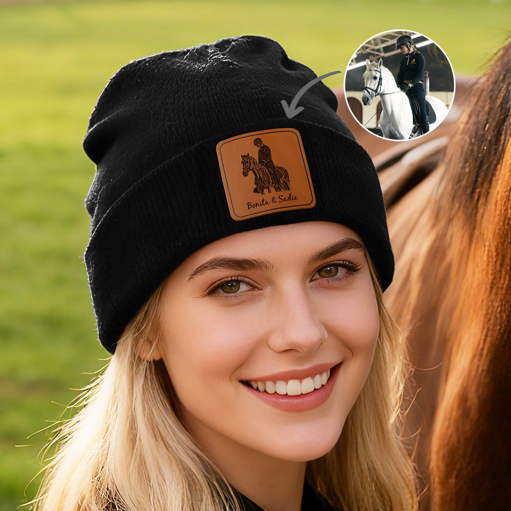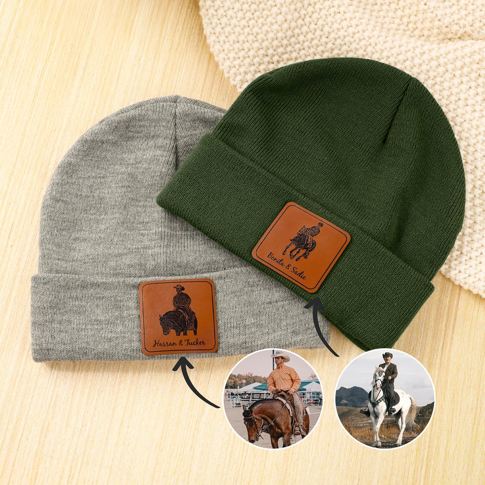 Diese gestrickte Beanie-Mütze mit ihrem einzigartigen und personalisierten Design ist ein Stil-Statement für Pferdeliebhaber. Sie können das hübsche Porträt Ihres geliebten Pferdes oder das intime Foto von Ihnen mit dem Pferd auf exquisite Weise präsentieren. Das Besondere daran ist, dass Sie den Namen des Pferdes oder seines Besitzers unter dem Foto angeben und mit einer Vielzahl von modischen Farben kombinieren können.