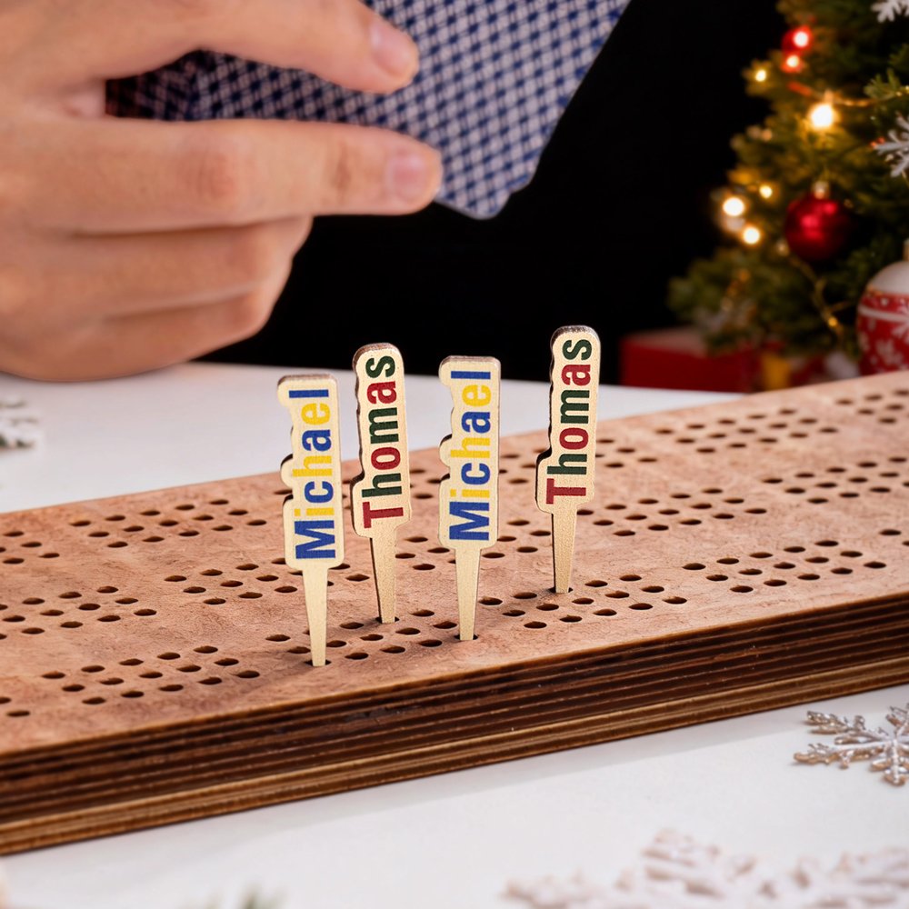 Jedes Set enthält drei Cribbage-Stifte in bis zu 25 leuchtenden Farben. Gestalten Sie Ihren Namen und machen Sie jeden Stift zu einem Unikat, das die Ästhetik des Spiels aufwertet und den Spaß und die Kameradschaft beim Cribbage-Spielen mit Freunden und Familie unterstreicht.