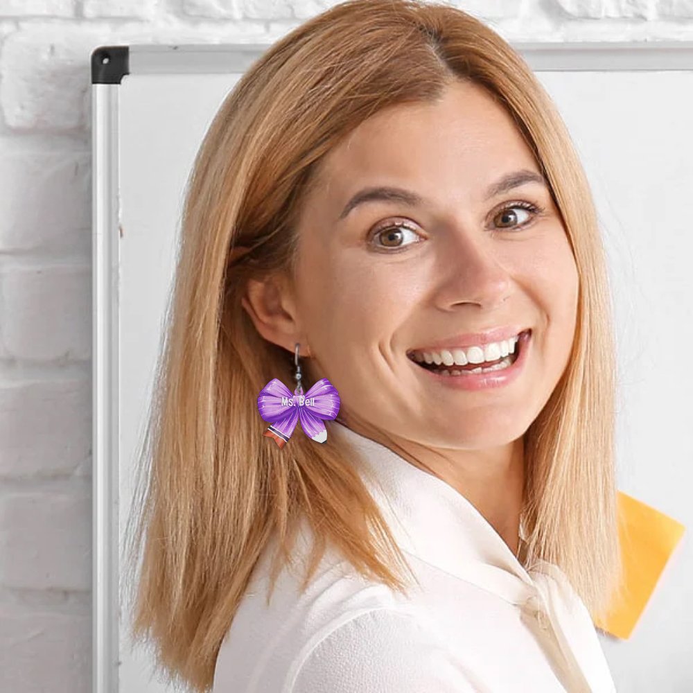 Die Ohrringe enthalten Bleistiftelemente in einem niedlichen Schleifendesign, das von den täglichen Lehrmitteln der Lehrer inspiriert ist und Wissen und Sorgfalt impliziert. Es gibt 8 leuchtende Farben zur Auswahl, und individuelle Namen werden unterstützt, so dass jedes Paar Ohrringe ein exklusiver Erinnerungsschmuck für Lehrer ist, einzigartig und bedeutungsvoll.