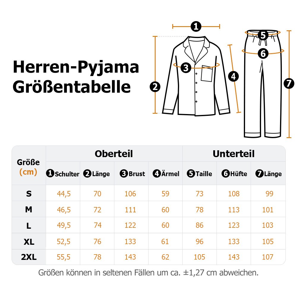 | Material: | Pyjama-Oberteil - 100% Baumwolle, Pyjama-Hose - 95% Polyester, 5% Elasthan |