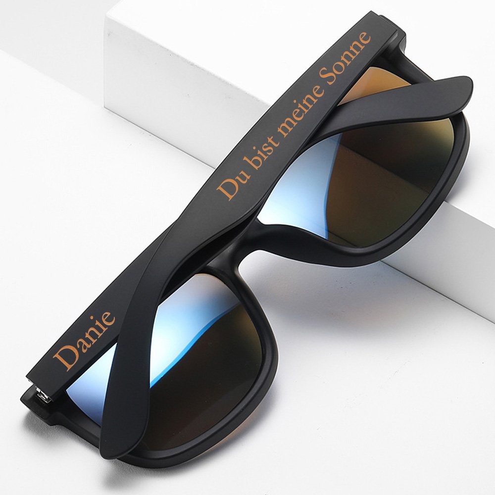 Perfekt für Familie, Freunde, Strandliebhaber oder jeden, der Outdoor-Aktivitäten liebt, drückt diese personalisierte Sonnenbrille Ihren Segen und Ihre Fürsorge aus. Ob es sich um einen Geburtstag, Urlaub, Sommerurlaub oder einen anderen besonderen Anlass handelt, wird diese Sonnenbrille sicherlich im Mittelpunkt stehen und jedermanns Herz erobern.