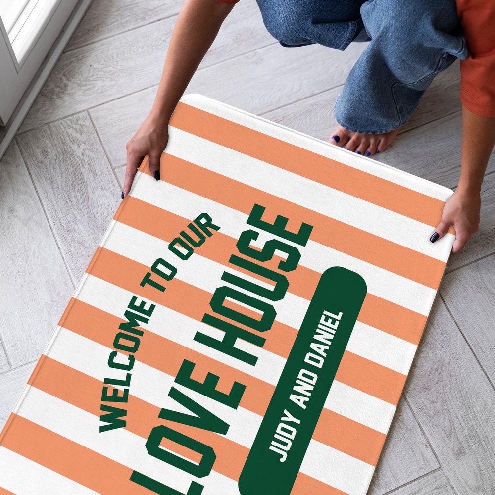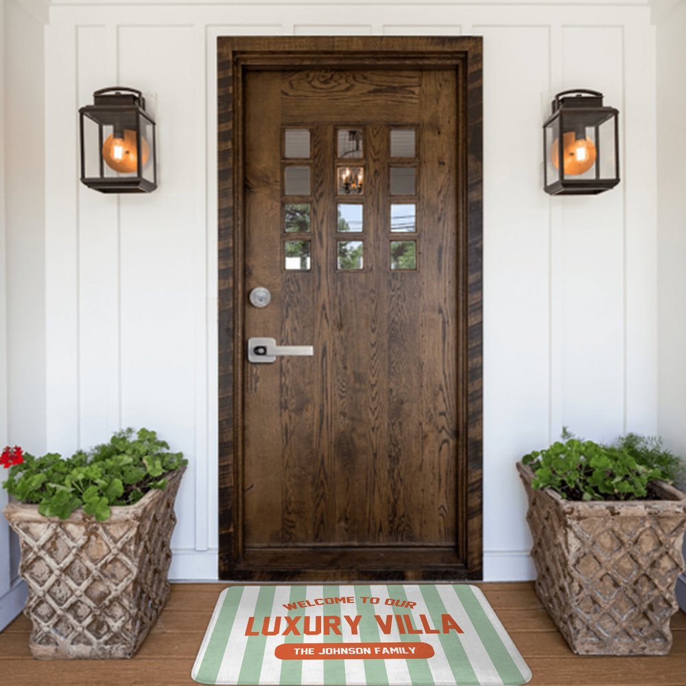 Unsere Fußmatte zeichnet sich durch weiche und doch lebendige Streifen aus, inspiriert durch das morgendliche Sonnenlicht, das durch die Fenster strömt. Die warme, aber dezente Farbpalette passt zu jedem Einrichtungsstil. Der individuell gestaltbare Text - einschließlich Ihres Familiennamens, einer Willkommensnachricht, eines Segens oder einer herzlichen Botschaft - trägt zum Gesamtbild bei und macht die Fußmatte einzigartig.