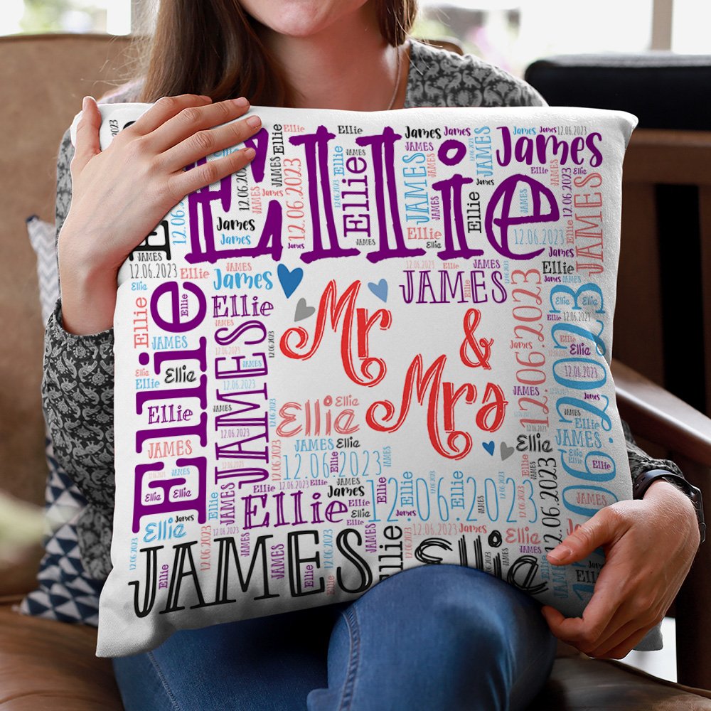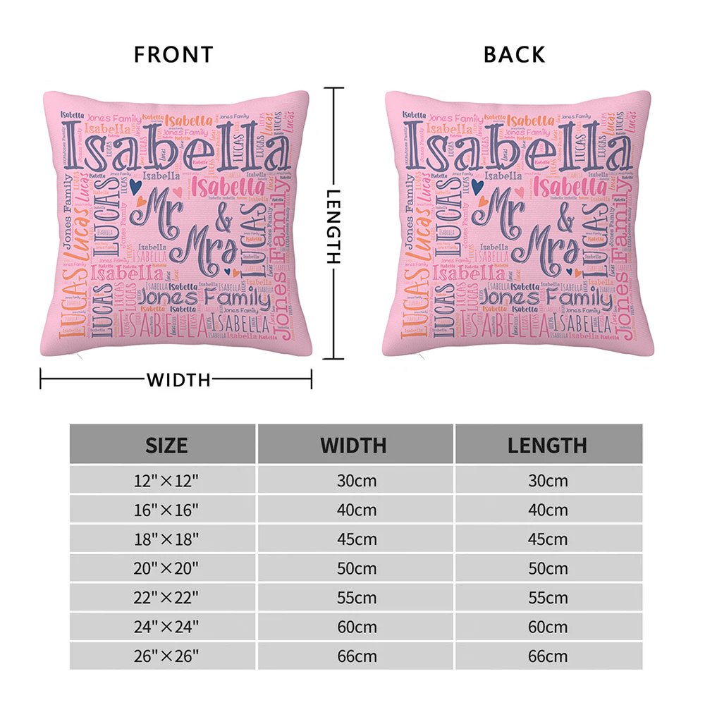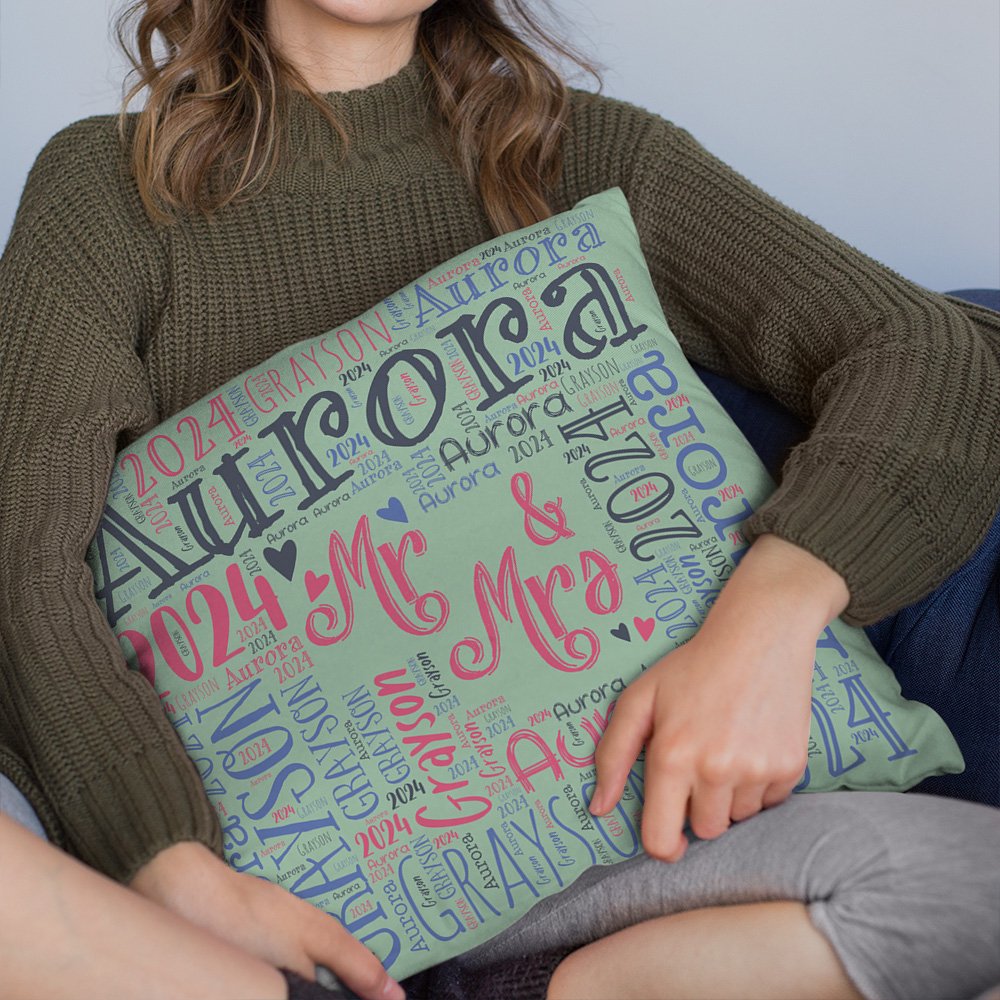 Stellen Sie sich eine wunderschön gestaltete Wortwolke vor, die die einzigartige Geschichte der Liebesreise eines Paares erzählt. Unser Kissenbezug ermöglicht es Ihnen, ihn mit Namen, wichtigen Daten und besonderen Worten zu personalisieren, die einen sentimentalen Wert haben.