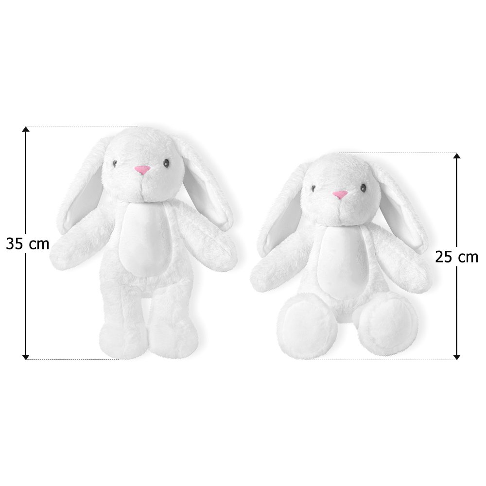 Der Außenstoff ist ultraweich und bietet ein sanftes und kuscheliges Gefühl für kleine Hände und Gesichter. Er ist aber auch robust genug, um begeisterten Umarmungen und Quetschungen standzuhalten. Die Füllung im Inneren ist gleichmäßig verteilt und macht die Häschen perfekt plump, so dass sie sich ideal zum Kuscheln während der Schlafenszeit oder im Bett eignen. Eltern können sich darauf verlassen, dass diese Spielzeuge aus sicheren und ungiftigen Materialien hergestellt sind und ihren Kindern ein sorgenfreies Spielerlebnis bieten.
