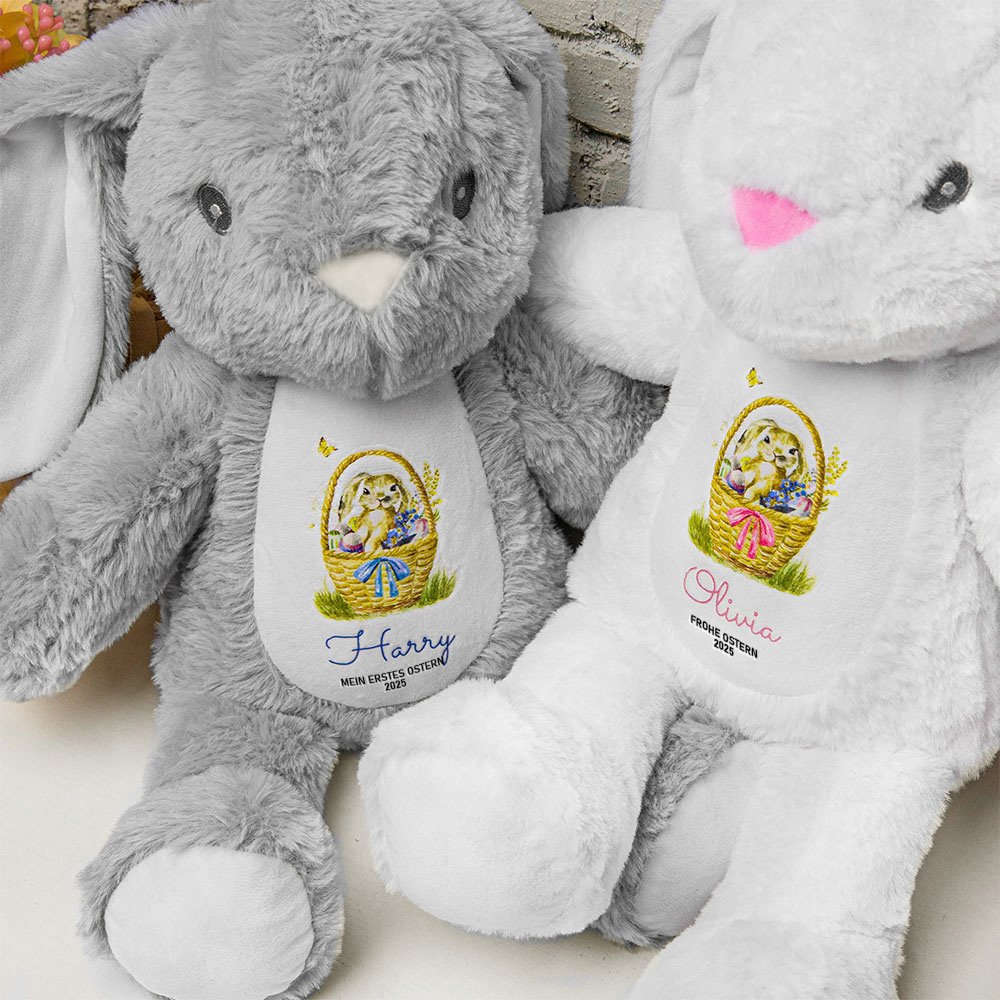 Dieser niedliche Plüschhase ist das perfekte Ostergeschenk für Kinder. Er hat einen individuell gestaltbaren Bauchbereich, in den Sie eine besondere Osternachricht, Ihren Namen und das Jahr eintragen können. Es ist ein einzigartiges und aufmerksames Geschenk, das jahrelang in Ehren gehalten wird.