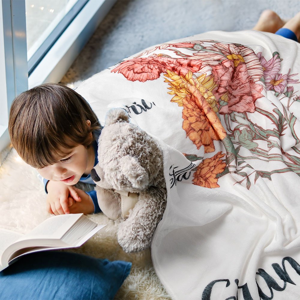 Zusätzlich zur Auswahl der Geburtsblumen können wir diese Decke mit den Namen von Ihnen und Ihrer Familie versehen und das Jahr aufzeichnen, was sie zu einem wirklich warmen und bedeutungsvollen Andenken macht!