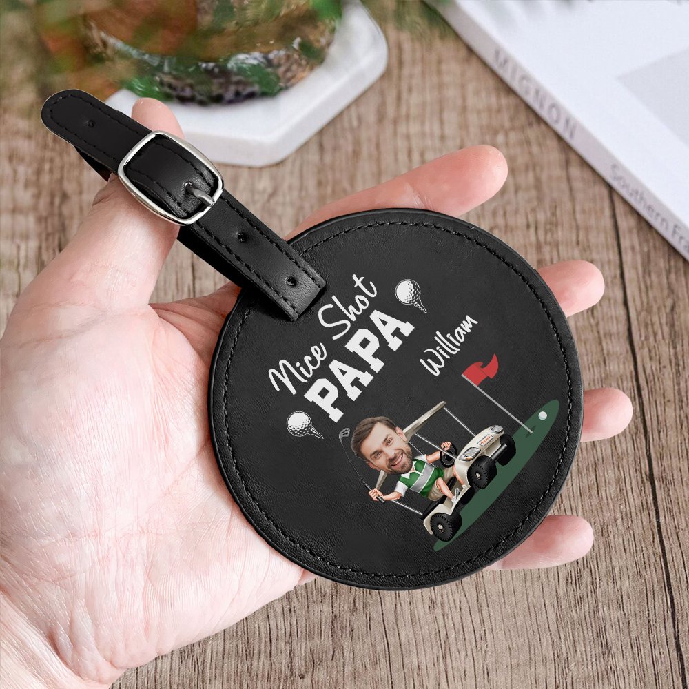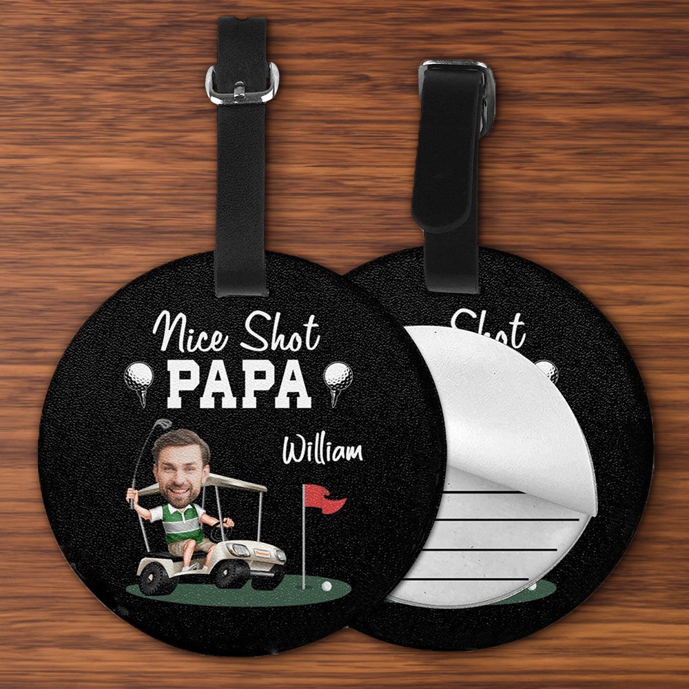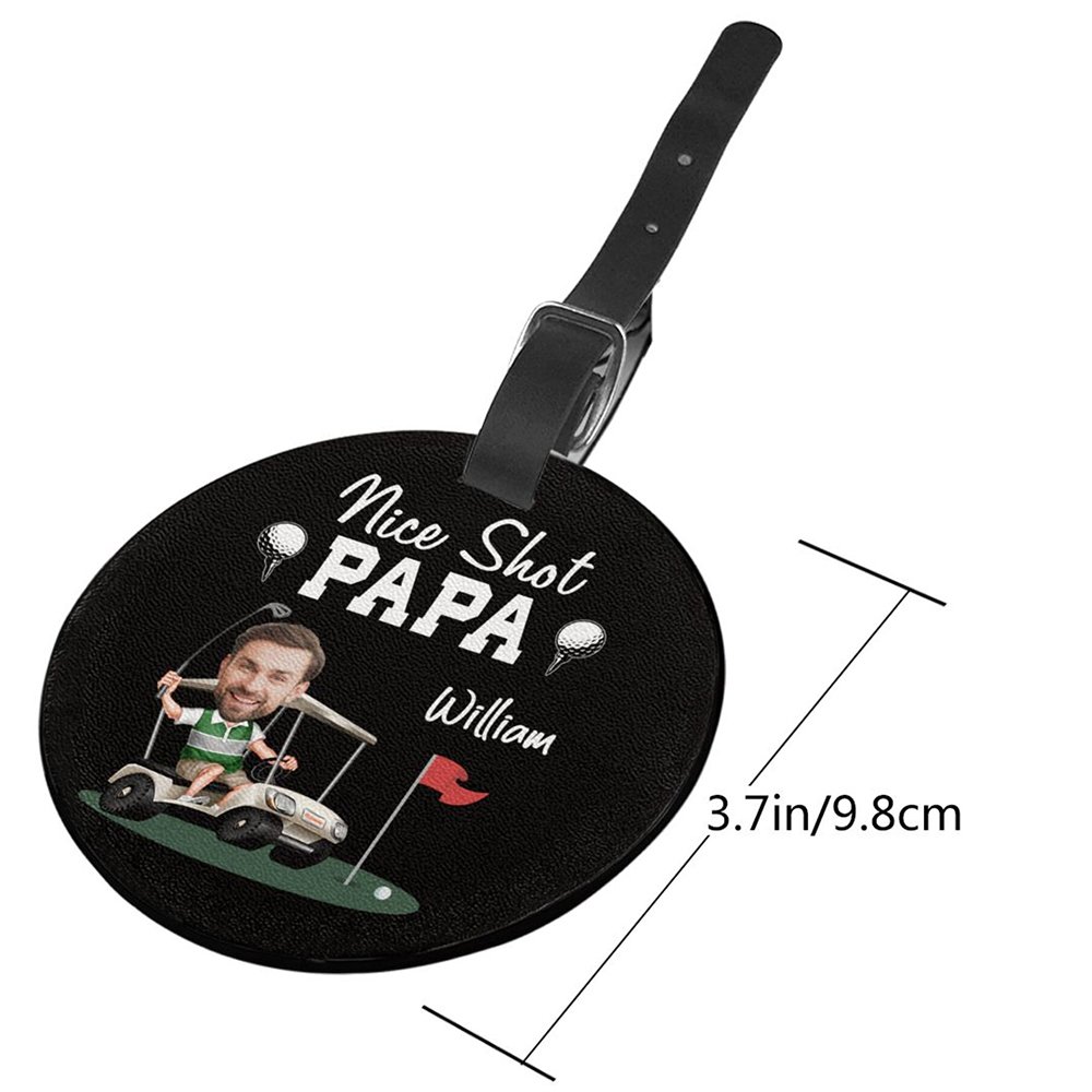Kombiniert auf einzigartige Weise Papas warmes Kopfbild mit klassischen Golfelementen zu einem runden Gepäckanhänger, der sowohl praktisch als auch voller Persönlichkeit ist. Er ist nicht nur leicht zu identifizieren, sondern auch ein warmes kleines Stück, das die Zuneigung der Familie zum Ausdruck bringt. Gestalten Sie ihn mit dem Namen oder Titel Ihres Vaters, um ihm eine persönliche Note zu verleihen. Gestalten Sie einen einzigartigen Gepäckanhänger für einen geliebten Menschen oder für sich selbst. (PRAKTISCHER REISEBEGLEITER): Verabschieden Sie sich von gewöhnlichen Gepäckanhängern und verbessern Sie Ihr Reiseerlebnis mit unserem künstlerischen und praktischen Zubehör. Mit dem eingebauten Kartenschlitz können Sie bequem Ihre Kontaktinformationen einfügen und so Ihr Gepäck auf Reisen leichter identifizieren.
