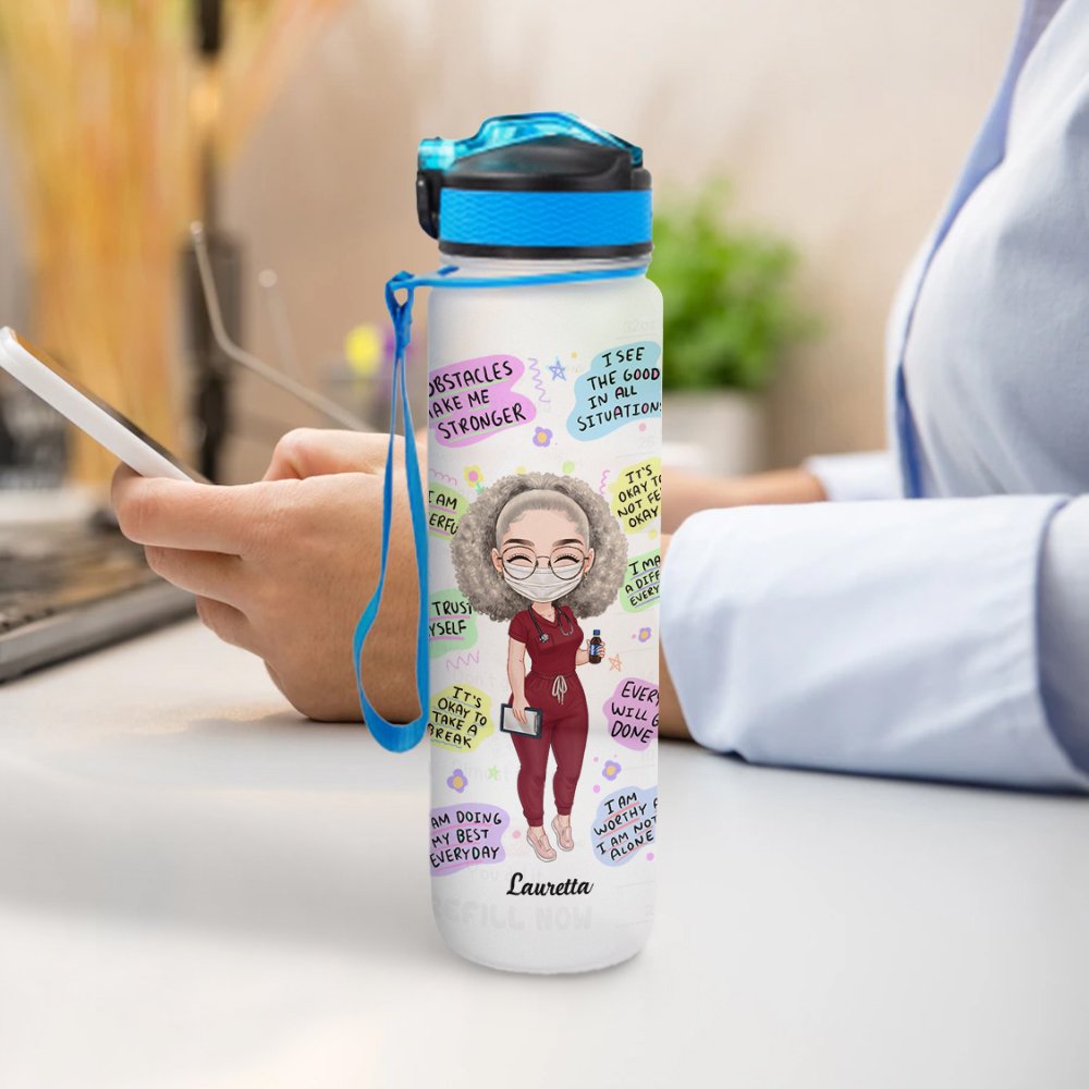 This is a customized water tracking bottle for healthcare professionals, It is perfect for measuring your daily water intake, reminding you to stay hydrated and drink enough water throughout the day. It is a must-have in your life to help you achieve good health.