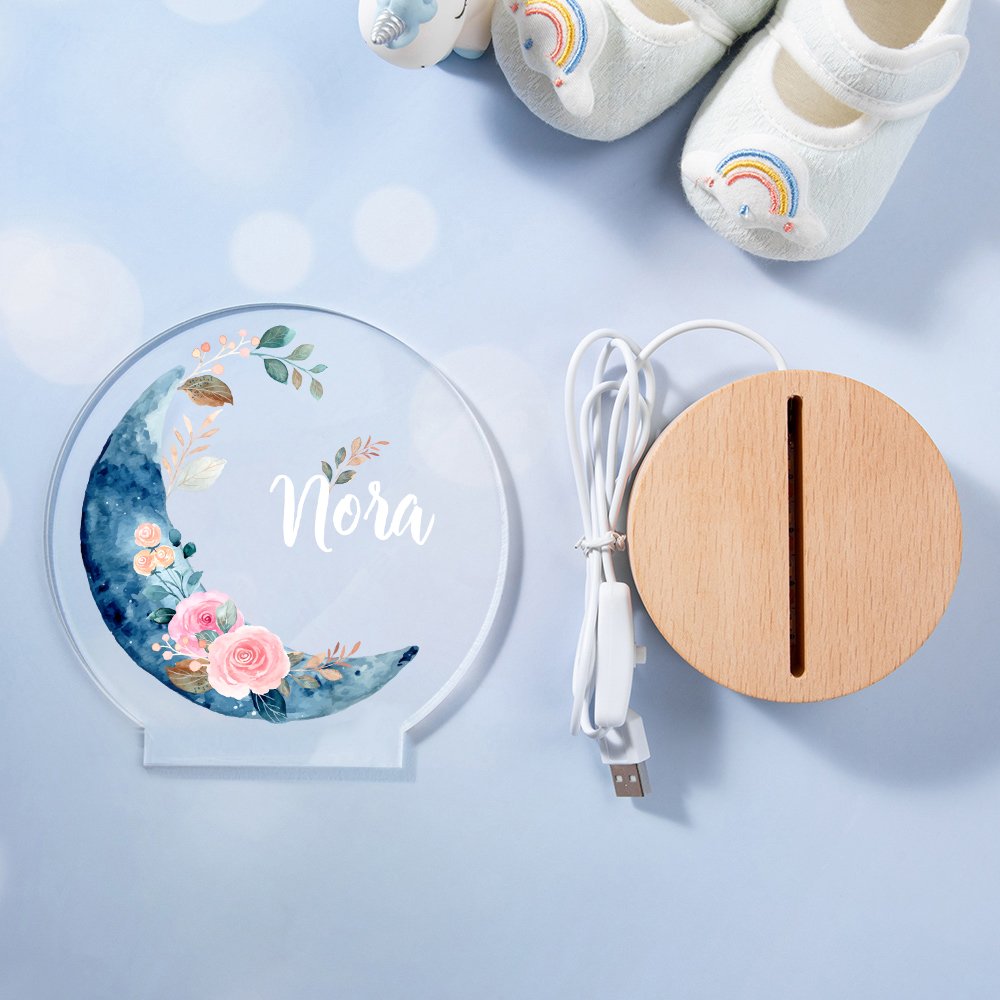 Diese Plakette verbindet die Schönheit einer Mondsichel mit der zarten Anmut eines Blumenmotivs und ist damit eine atemberaubende Ergänzung für jedes Kinderzimmer. Sie haben die Wahl zwischen drei verschiedenen Mondmotiven und können dieses atemberaubende Nachtlicht mit dem Namen Ihres Kindes personalisieren, was es zu einem echten Unikat macht.