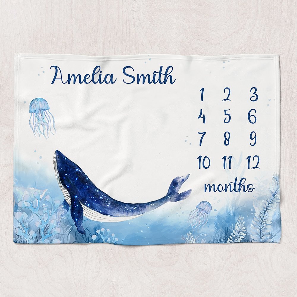 Diese personalisierte Decke mit Wal- und Meeresmotiven ist ein wunderbares Geschenk für Babypartys, frischgebackene Eltern oder Neugeborene. Ihr einzigartiges Design und die individuell gestaltbaren Eigenschaften verleihen jedem Anlass eine durchdachte Note und machen sie zu einem wertvollen Andenken, das Babyfotos aufwertet und die ersten Meilensteine feiert.