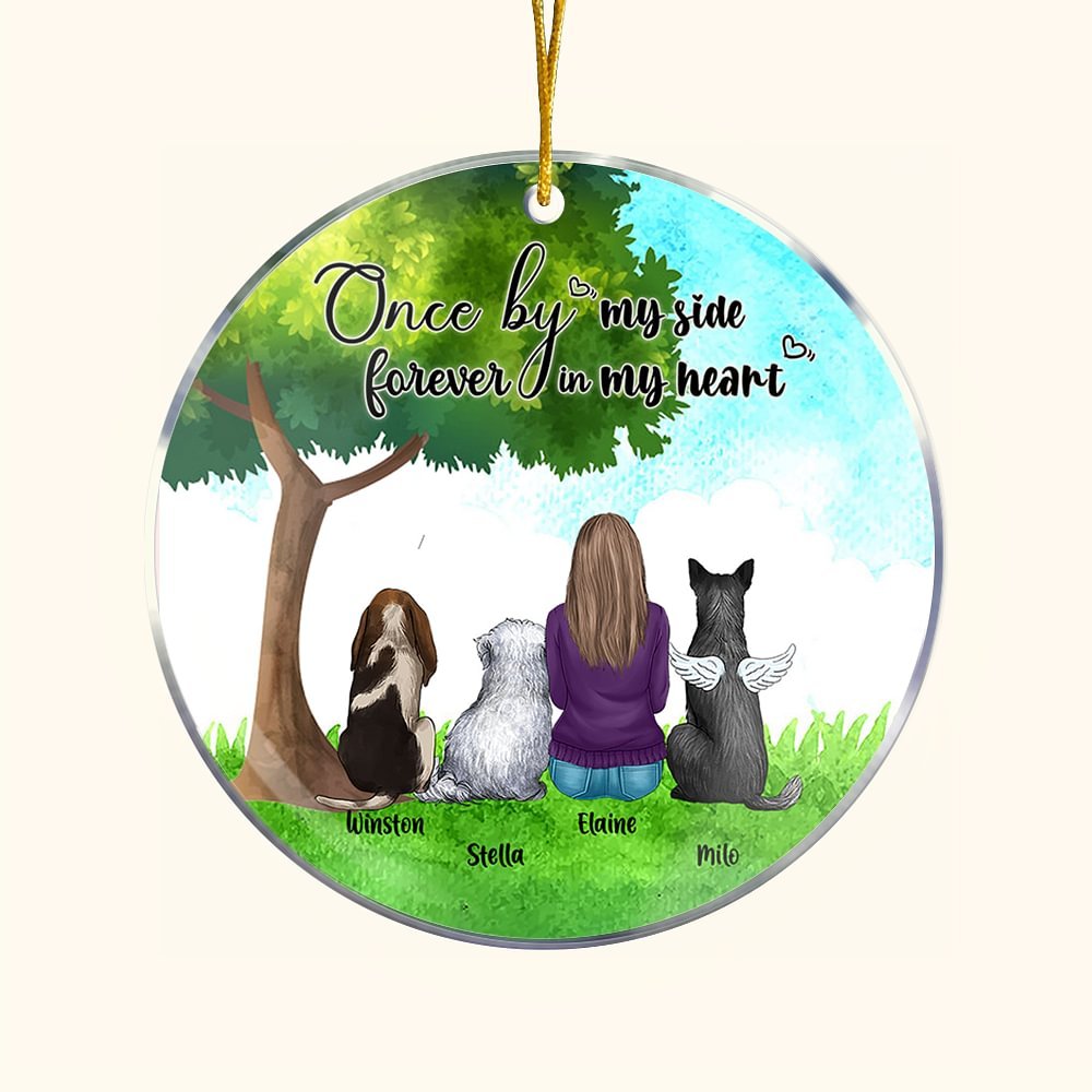 Der Hintergrund aus grünem Gras verleiht der Dekoration ein Gefühl von Harmonie und Natur. "Einmal an meiner Seite, für immer in meinem Herzen" zeigt Ihre Liebe und Ihr Fehlen für Hunde. Die hängende runde Form fühlt sich sanft an, wodurch sie sich von anderen Accessoires abhebt und wirklich Ihre Liebe zu Ihrem Hund zeigt.