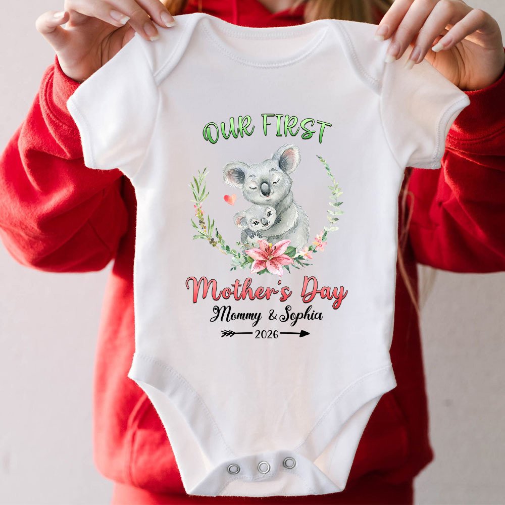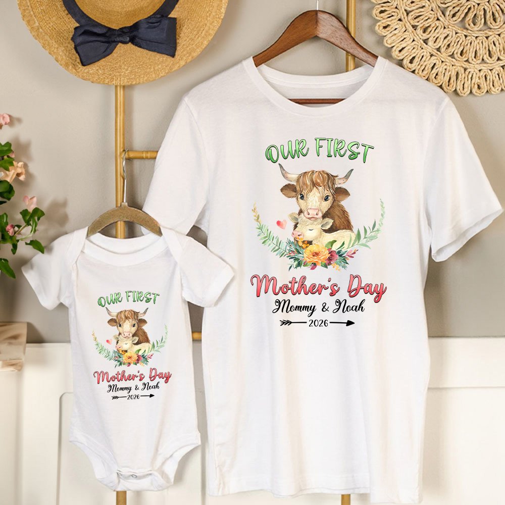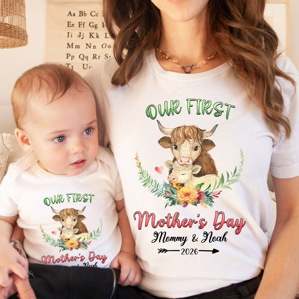 Unsere T-Shirts sind mit niedlichen Tieren gestaltet, um die Liebe zwischen Müttern und Kindern mit der engen Beziehung zwischen Elefanten, Braunbären, Giraffen, Hochlandkühe und Koalas, und mit dem feierlichen Text von "Our First Mother's Day", die die festliche Atmosphäre stärker und wärmer macht auszudrücken. Wir bieten die Möglichkeit, Ihren Namen und den Ihres Kindes auf der Vorderseite des T-Shirts hinzuzufügen, diese Anpassung fügt eine persönliche Note und macht das Kostüm noch mehr Bedeutung.