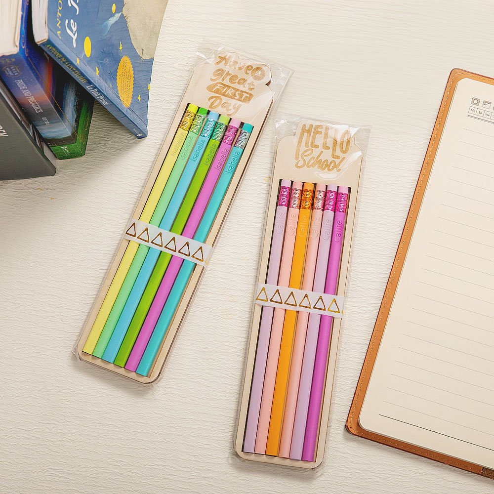 Dieses personalisierte Bleistiftset ist das perfekte Geschenk für Kinder zum Schulanfang und sorgt dafür, dass sie sich auf das neue Schuljahr freuen und vorbereitet sind. Gleichzeitig verleiht es den Schulsachen eine persönliche Note.