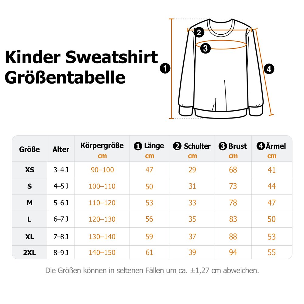| Größe: | Erwachsenen-T-Shirt – XXS, XS, S, M, L, XL, 2XL, 3XL, 4XL, 5XL Kinder-T-Shirt – XS, S, M, L, XL, 2XL Erwachsenen-Sweatshirt – XXS, XS, S, M, L, XL, 2XL, 3XL Kinder-Sweatshirt – XS, S, M, L, XL, 2XL |