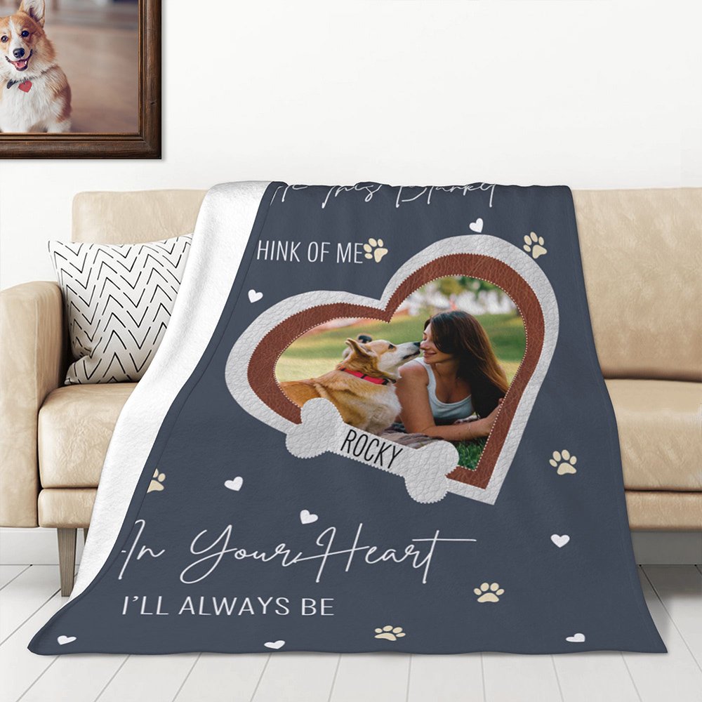 Das Design dieser Decke ist voll von Wärme und Liebe. Sie ist mit einem Haustiermotiv versehen. Du kannst das Muster auf der Decke entsprechend dem Foto deines Lieblingstiers anpassen. Es gibt zwei Texte auf der Decke für Sie zur Auswahl: "Nicht mehr an meiner Seite, aber für immer in meinem Herzen" und "Kuscheln Sie diese Decke und denken Sie an mich in Ihrem Herzen werde ich immer sein". Du kannst auch den Namen deines Haustiers auf die Decke schreiben, um sie zu einem einzigartigen Souvenir zu machen.